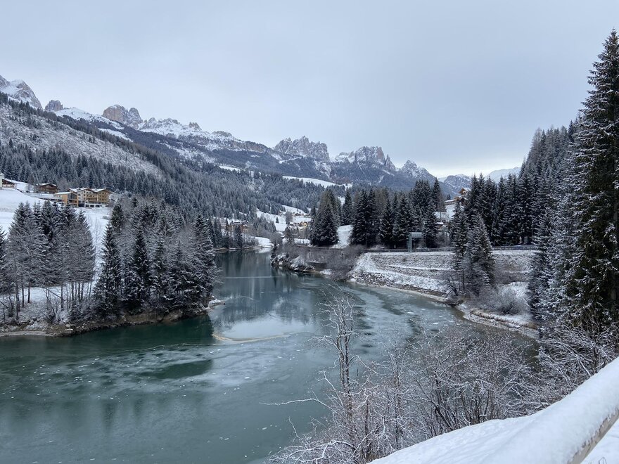 - Da Moena: superate la galleria e proseguite dritto costeggiando la strada del Lago di Soraga. Arrivate a Soraga, e dopo il ponticello prima della chiesa, svoltate a sinistra. Continuate dritto e troverete il nostro Hotel Latemar sulla sinistra.