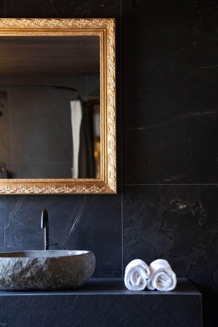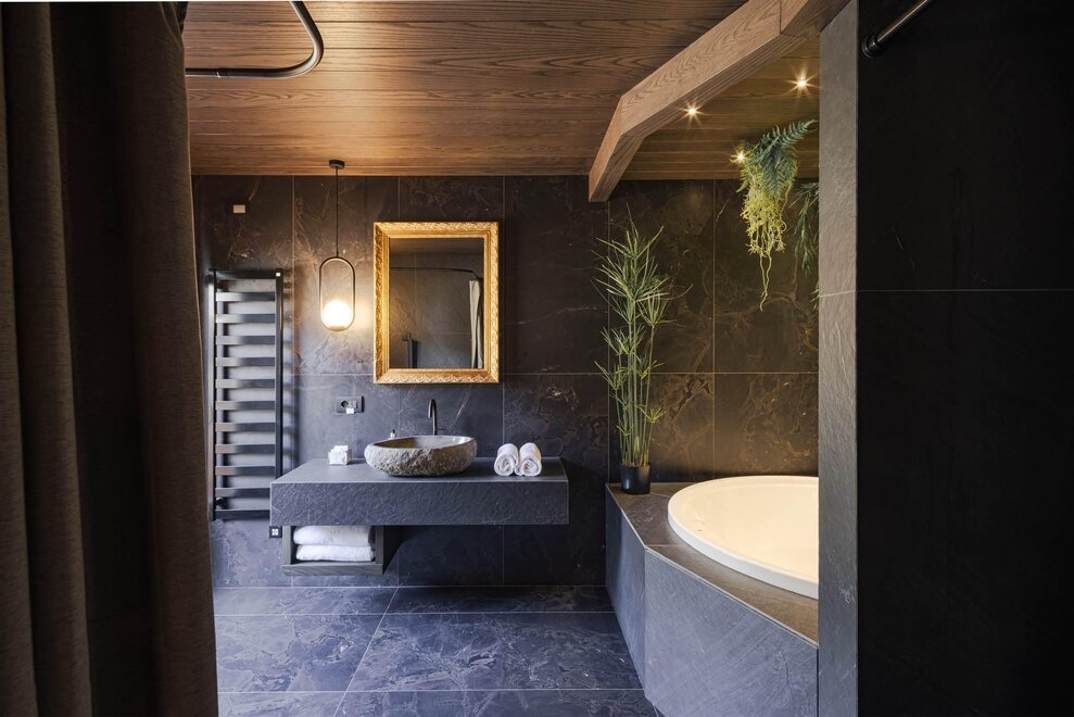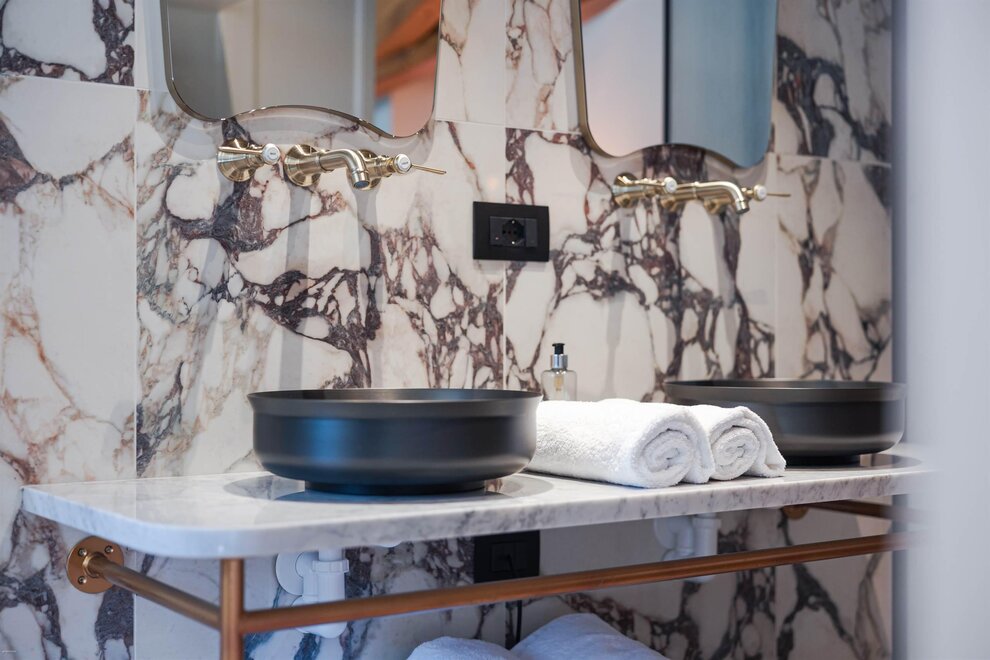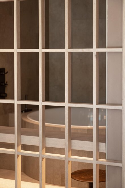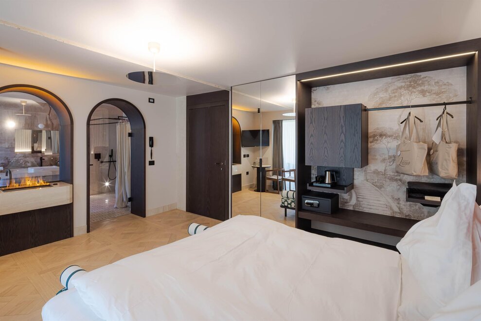 In questa suite ispirata ai rituali di benessere giapponesi, tutto invita alla contemplazione e alla pace dei sensi, dagli elementi minimalisti in legno, alle tonalità tenui del legno,alle tonalità tenui del legno, fino ai lavabi in pietra.