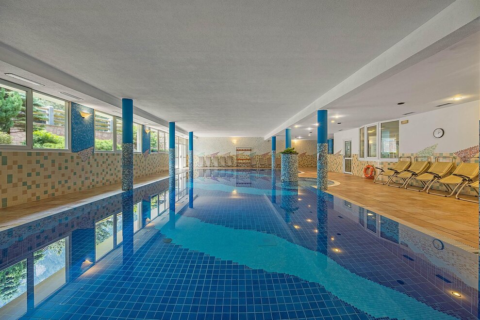 Dispone di parecchi servizi comuni compresi nel prezzo quali grande hall-ricevimento, piscina coperta con idromassaggio, sauna, bagno turco, palestra, sala giochi, baby room, sala animazione, mini club piu’ baby dance (4-11 anni, luglio, agosto, natale, capodanno ed epifania), noleggio biciclette, parco giochi per bambini e posto macchina.