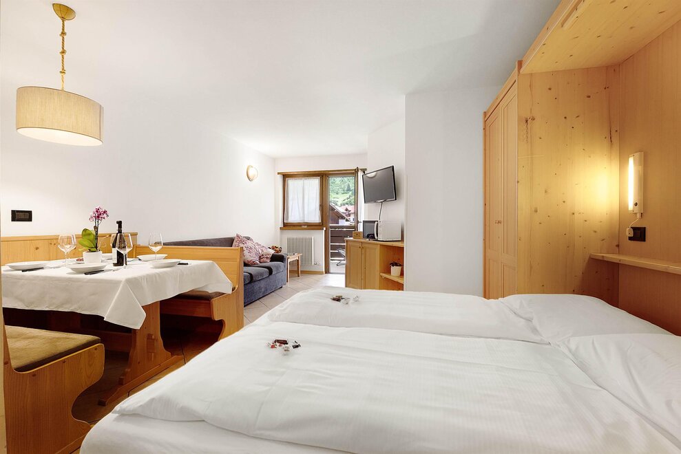 Il prezzo dell'offerta include la biancheria da letto e da bagno, pulizie finali, consumi ed entrata a tutti i servizi comuni. Tutti gli appartamenti dispongono di coperte e cuscini, telefono, Tv, asciugacapelli, microonde, bollitore, cucina arredata e corredata, kit pulizia cucina, prodotti da bagno, cassaforte, balcone arredato con tavolo e sedie. A pagamento invece: ristorante/pizzeria interno (per informazioni sui prezzi delle convenzioni tel. +39/0462/501997), lavanderia e stireria a gettoni, garage (€10,00 al giorno), noleggio passeggino, noleggio passeggino da escursione e zaino porta bebè, noleggio biciclette.