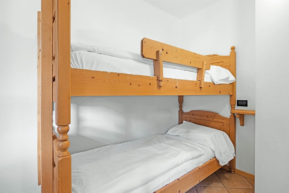Questo appartamento è così disposto: soggiorno con divano letto matrimoniale o letto matrimoniale a scomparsa, entrata con letto singolo, zona pranzo, angolo cottura separato, cameretta con letto a castello o cameretta su soppalco con due letti singoli, bagno con doccia e balcone con tavolo e sedie. Tutti gli appartamenti sono serviti da ascensore e dispongono di TV LCD, telefono, cassaforte, cucina attrezzata con frigorifero, pentolame, piatti e bicchieri, microonde, moka, kit pulizia cucina (detersivo, spugnetta e strofinaccio), bagno con doccia, bidet, wc e asciugacapelli. Vengono inoltre fornite le coperte, i cuscini e la biancheria da letto e da bagno con cambio settimanale.