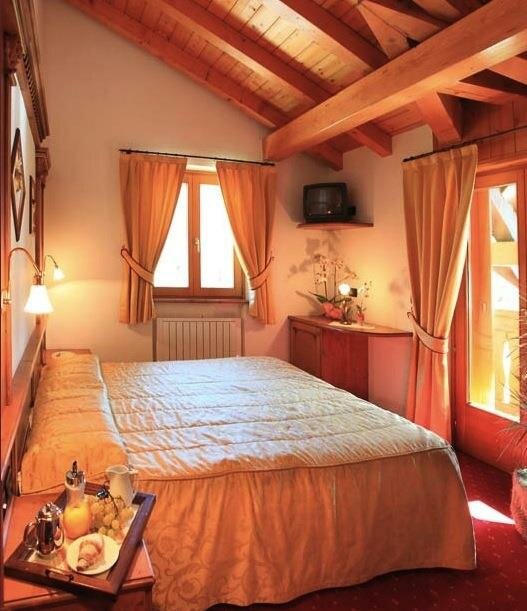 Le camere, in tipico stile montano, sono calde ed accoglienti, tutte personalizzate e corredate da caldi piumini e lenzuola ricamate; dotate di servizi privati con box doccia e termoarredo,asciugacapelli,riscaldamento autonomo, telefono, collegamento ad internet, tv, cassaforte e balconedotazioni camere/appartamenti