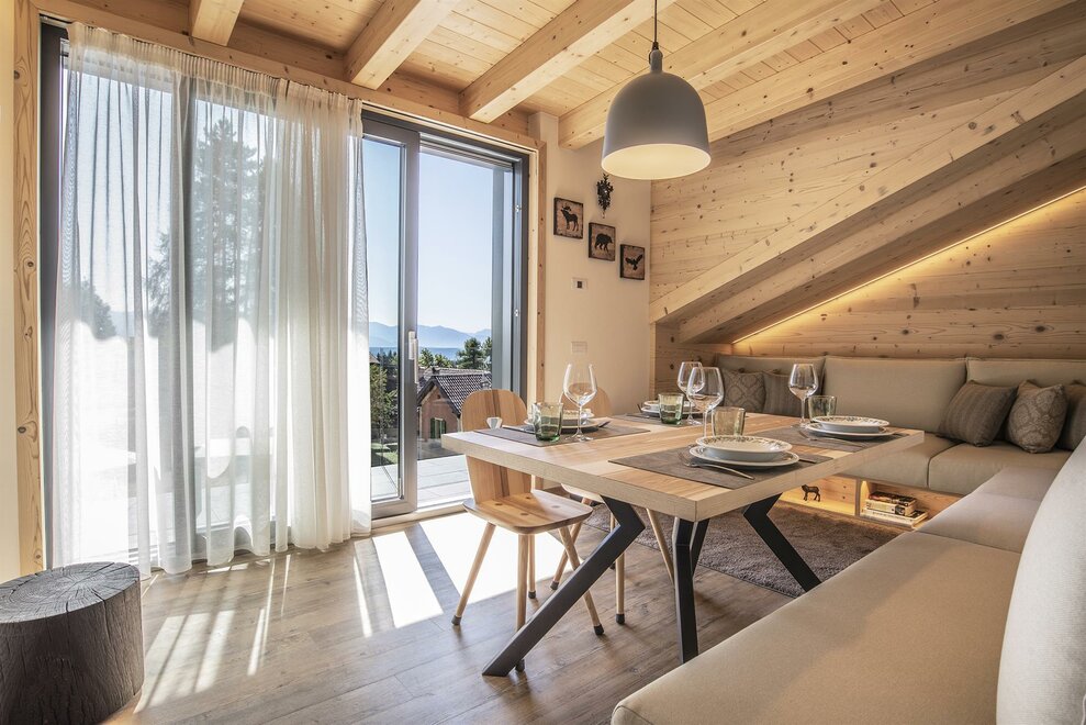 Sapranno accogliervi mille diverse emozioni create dalla modernità della casa, dagli arredi curati con i colori naturali delle nostre montagne, dal profumo del legno e del bosco.
