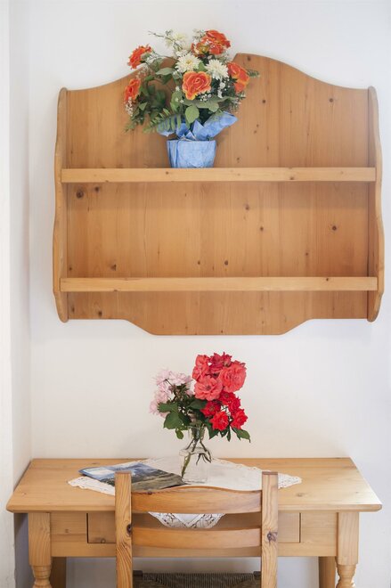 scrivania, telefono, TV, videoregistratore, stanza armadi, riscaldamento centralizzato, possib. collegamento internet, asciugamani compresi, giardino, area gioco recintata, TV-Sat, armadio