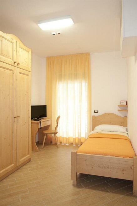 Ampia camera per tre persone, con possibilità di letto matrimoniale, dotata di 3 armadi, balcone, TV WC, doccia e bidet.