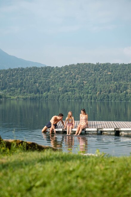 Le Family Junior Suite Alpine in stile alpino o in stile classimo si trovano nell'edificio principale e si affacciano sul lago. Queste suite con 2 zone notte separate sono l'ideale per le famiglie con i bambini. La camera, di ca. 45mq., interamente arredata in legno con uno charme particolare, è dotata di: - 2 zone notte separate, divise da una porta - balcone ammobiliato con vista sul lago - TV LCD da 22'' - frigo, telefono - WiFi, cassaforte, asciugacapelli, aria condizionata, moquette oppure legno. Le Family Suite Alpine classiche hanno il letto a castello in cameretta.