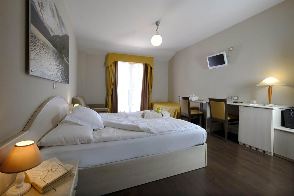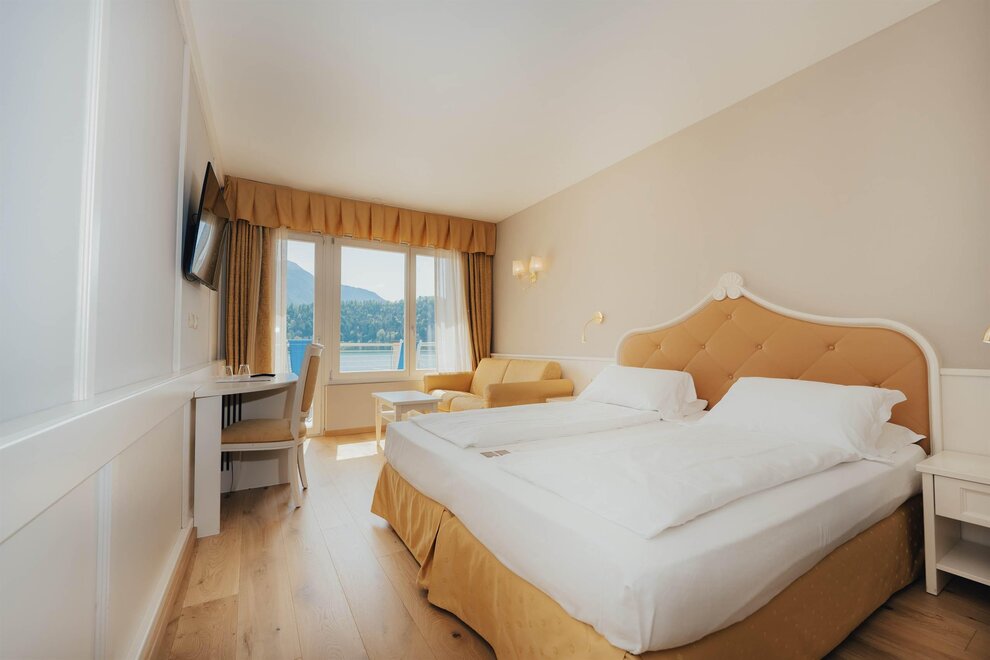 Il prezzo comprende: colazione continentale, ingresso al centro benessere spiaggia, noleggio mountain bike salvo esautimento, programma settimanale trekking e mountain bike.Romantik Junior Suite vista lago - 28 mq