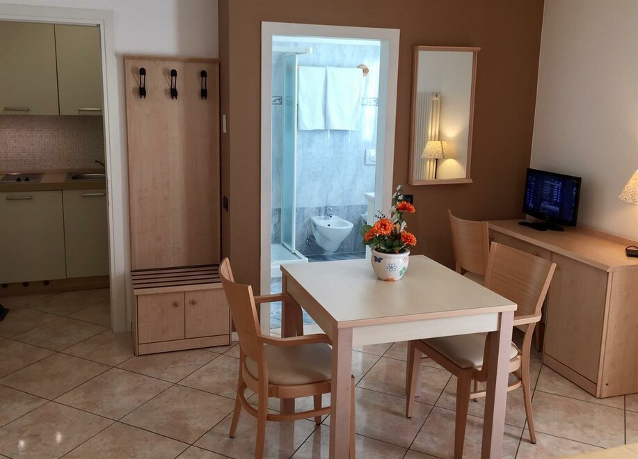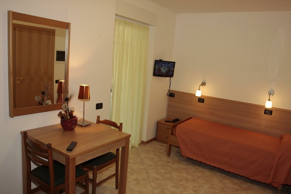 Monolocale matrimoniale per 1 persona con camera e soggiorno, vano cucina dotato di stoviglie, bagno con phon, balcone, biancheria per la camera e il bagno, tv led, cassaforte, collegamento internet wi-fi gratuito.