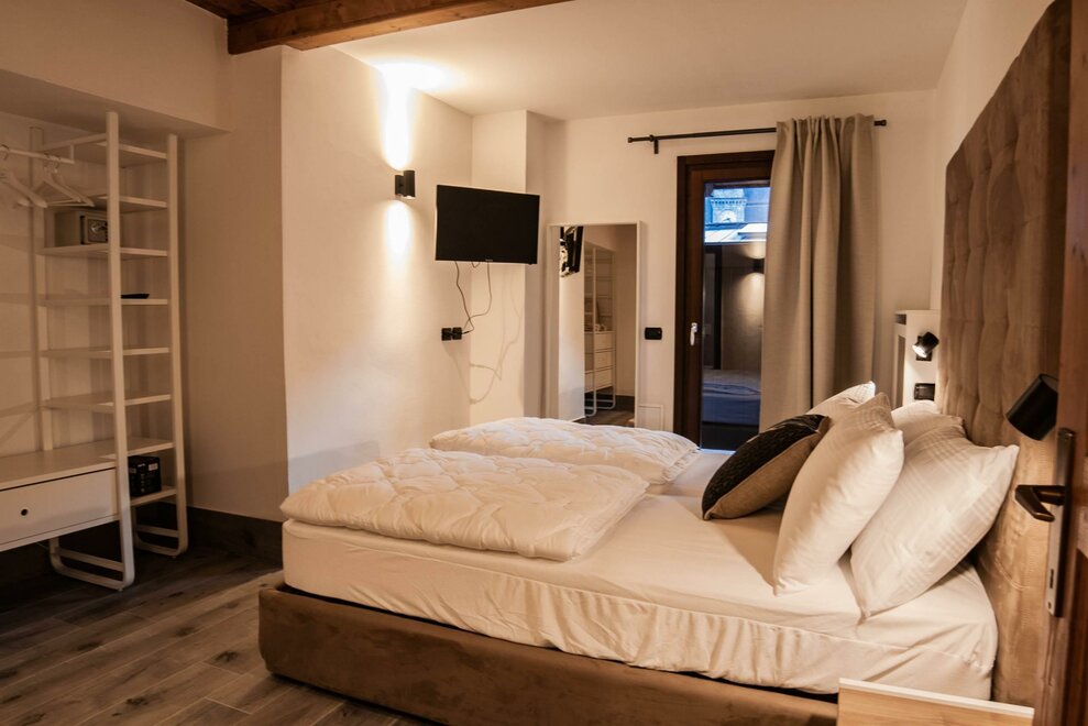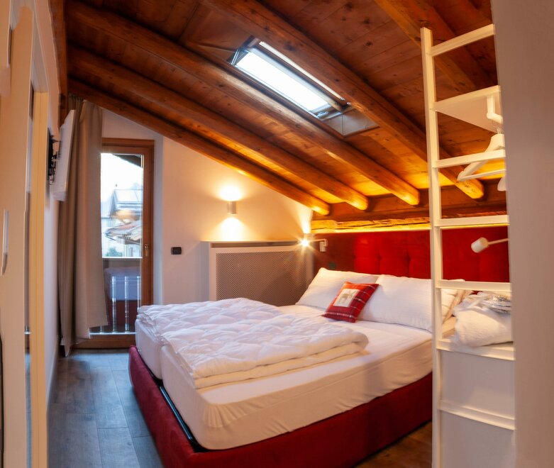 Il colore rosso è stato scelto per avvolgerti con calore e farti godere di tante coccole in un ambiente sfizioso ed espressivo dove la natura sembra incorniciata. La zona giorno, cucina e soggiorno con divano letto matrimoniale, un grande terrazzo dove potrai godere di una splendida vista sotto i raggi del sole. Due stanze da letto con testate importanti che si immergono nelle luci calde dal sapore di montagna.La SPA privata in loco (solo periodo invernale), raggiungibile comodamente in ascensore completa la Residenza Marconi qualificandola tra gli alloggi di lusso della Val Rendena.