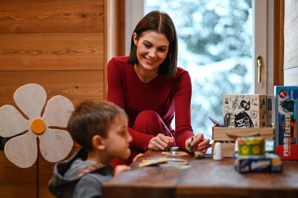 Camera per due persone, con possibilità di aggiunta di un terzo letto o culla. Servita di bagno con doccia. Finestra con vista sulle montagne. Superficie di stanza e bagno: 14 metri quadrati. Abbiamo scelto di farvi vivere un’esperienza davvero rigenerate anche per la mente, per questo nelle nostre stanze troverete un kit di giochi e attività da fare insieme a chi vi accompagna, per questa ragione è assente la Tv.