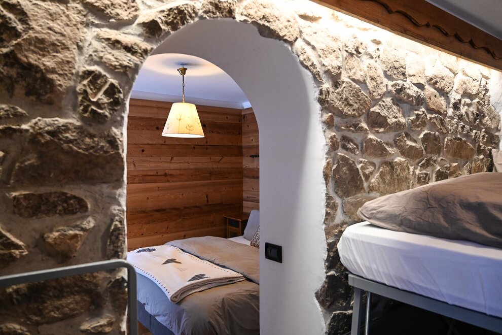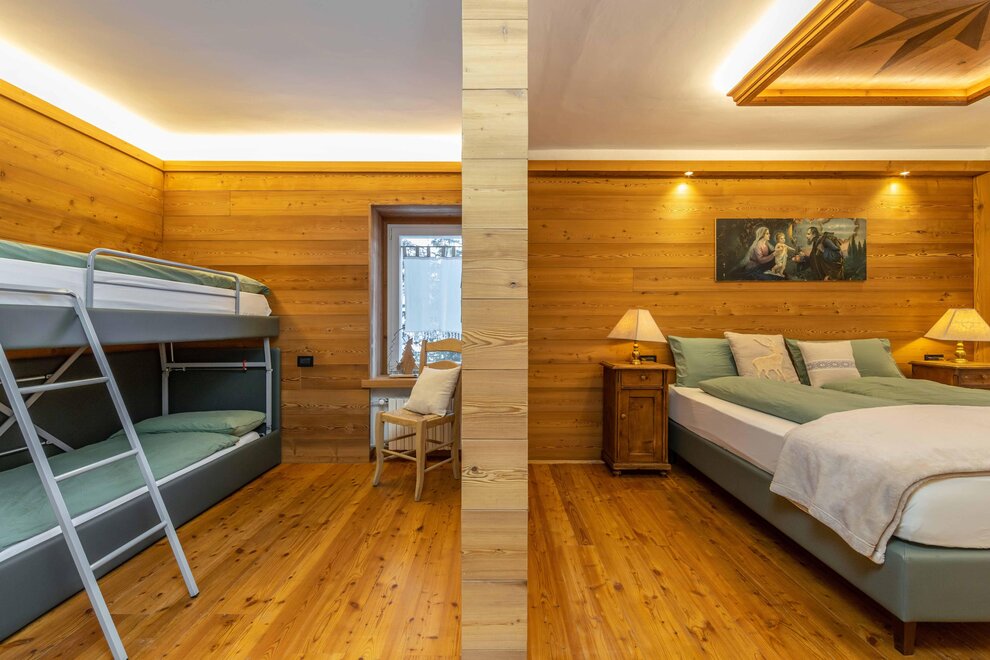 Stanza adatta ad una famiglia o un gruppo di 4 persone; sistemazione in letto matrimoniale, che può essere disposto in due singoli, più un letto a castello. Bagno in stanza con doccia. Pavimentazione in legno di larice naturale. Stanza con due finestre panoramiche. Superficie fino a 20 metri quadrati. Abbiamo scelto di farvi vivere un’esperienza davvero rigenerate anche per la mente, per questo nelle nostre stanze troverete un kit di giochi e attività da fare insieme a chi vi accompagna, per questa ragione è assente la Tv.
