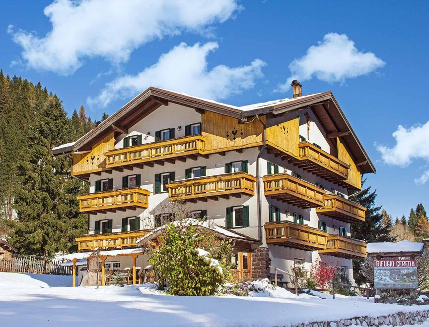Lungo la strada del Passo Cereda, che attraverso prati fioriti collega il Trentino e la Provincia di Belluno, il Rifugio accoglie da oltre sessant’anni i viaggiatori e gli escursionisti che percorrono l’Alta Via numero 2 da Bressanone a Feltre. Anche se siete saliti quassù con l’obiettivo di assaggiare i piatti tipici della cucina trentina è d’obbligo una (facilissima) passeggiata lungo la strada che conduce alla Malga Fossetta (giunti sul posto capirete perché) da cui potrete ammirare il Piz de Sagron immersi tra prati verdissimi. Apertura Il rifugio rimane sempre tutto l’anno, nei periodi di bassa stagione meglio contattarci telefonicamente per conferma. Prima dell'escursione si consiglia di verificare l’effettiva apertura del rifugio contattando il gestore Itinerari Da Passo Cereda, scendendo lungo la provinciale verso il Primiero, si incontra il sentiero che porta a Villa Welsperg in Val Canali, sede del Parco Naturale di Paneveggio e Pale di San Martino (ore 1.30 di cammino, difficoltà E). Molto lunga invece la traversata verso il Rifugio Treviso in val Canali (ore 5 di cammino, difficoltà EE). Altrettanto interessante il percorso che raggiunge il piccolo abitato di Sagron attraversando secolari boschi di conifere e le pietraie sotto al massiccio del Piz di Sagron.