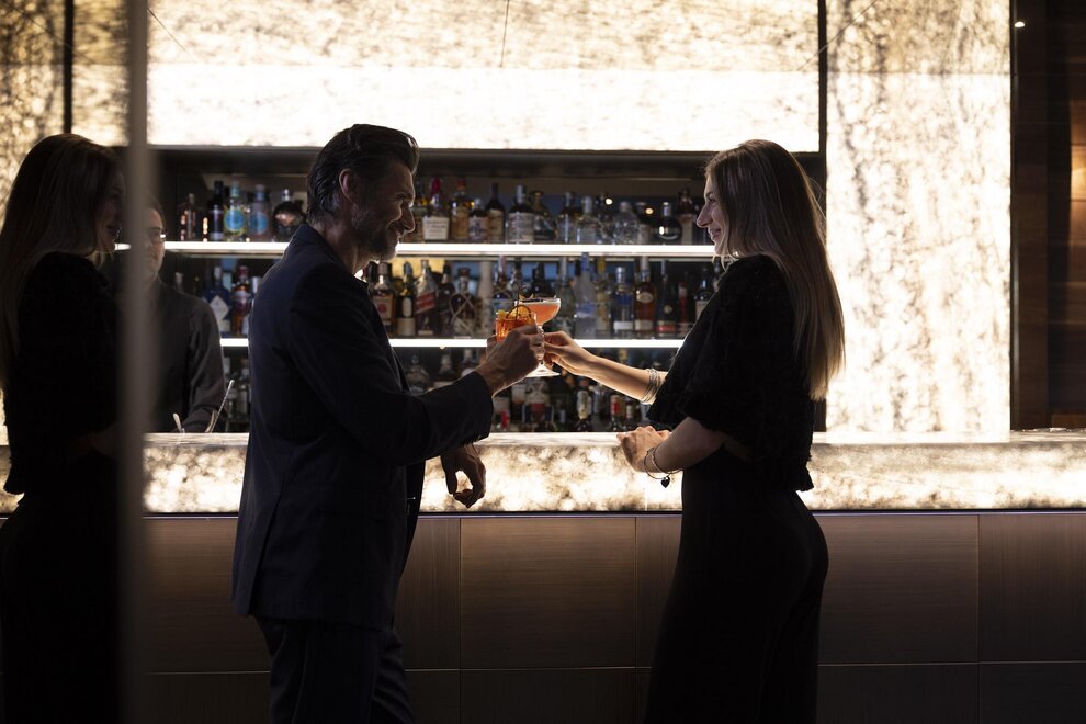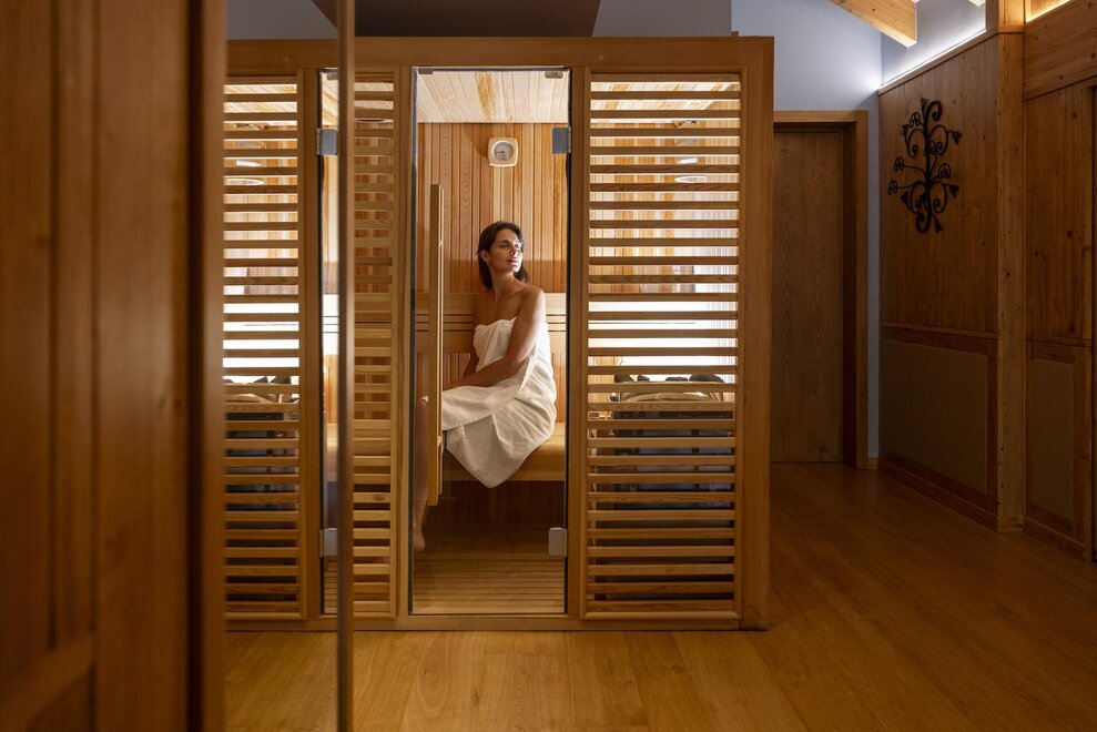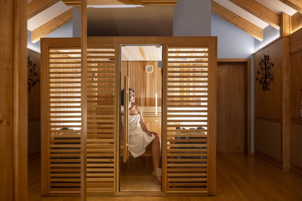 Relax puro e benessere: la nuovissima Suite offre tutto questo. Le cromie raffinate dei toni azzurri insieme al colore naturale degli arredi e dei pavimenti invitano a rilassarsi. L'ambiente spazioso offre oltre ad un bagno moderno ed una cabina armadio, anche una sauna privata. L'ideale per rigenerarsi dopo una giornata in montagna. Il balcone privato affacciato sul centro di Madonna di Campiglio.