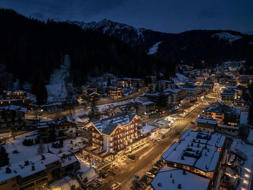 Per coloro che giungono a Madonna di Campiglio da Pinzolo, l`Hotel Splendid e` immediatamente riconoscibile per le caratteristiche facciate ove le parti lignee dei poggioli e della copertura sottolineano lo stile montano. La posizione e`tra le più servite: situato in zona centrale sul viale principale di fronte al laghetto e al campo da pattinaggio, l`albergo e` comodo per raggiungere gli impianti di risalita dello Spinale e dei Cinque Laghi. Servizio privato gratuito di navetta per le piste da sci. L'Hotel dispone inoltre di garage e parcheggio. LE CAMERE Le camere sono tutte dotate di servizi privati con linea cortesia, asciugacapelli, sono arredate in legno di abete e castano, alcune con balcone panoramico, radio, TV Lcd 26 pollici, telefono, frigobar, cassaforte, internet e ricambio aria centralizzato e riscaldamento. CENTRO BENESSERE Il nostro centro benessere è dotato di piscina coperta, sauna, idromassaggio, e reparto beauty e wellness.