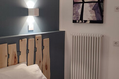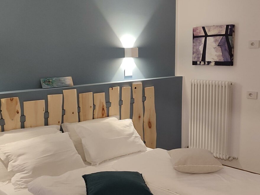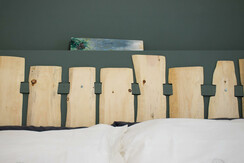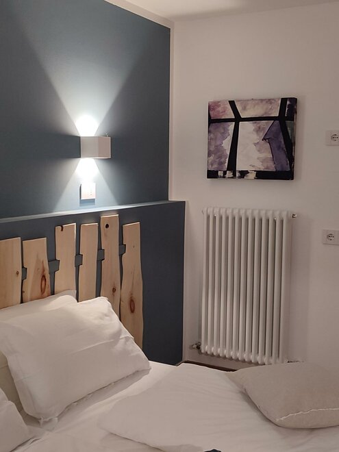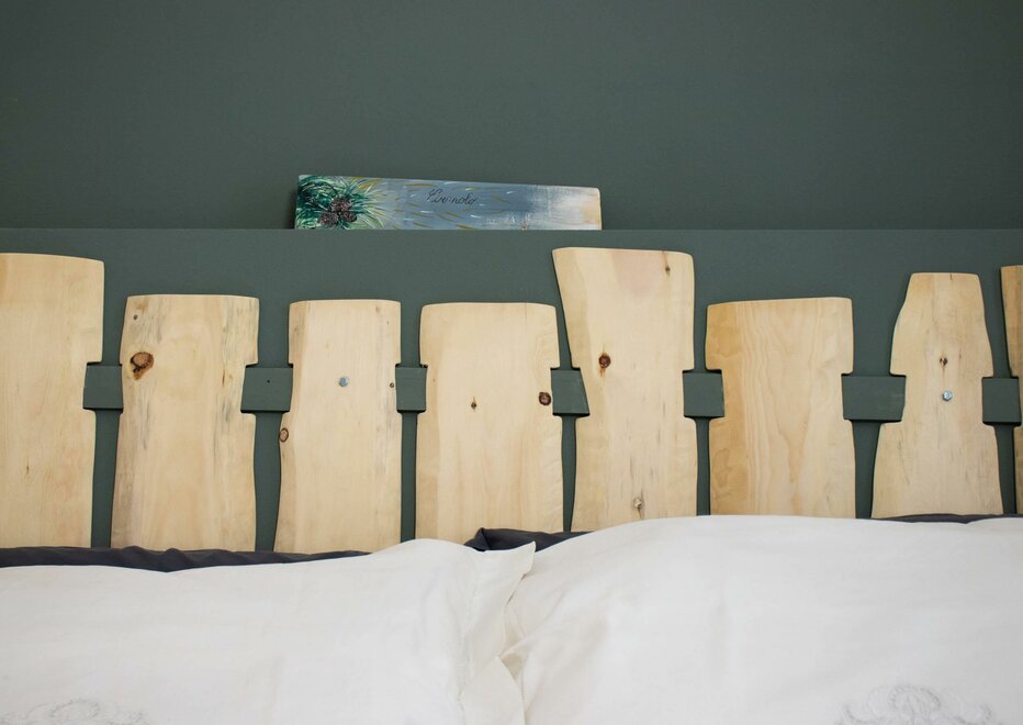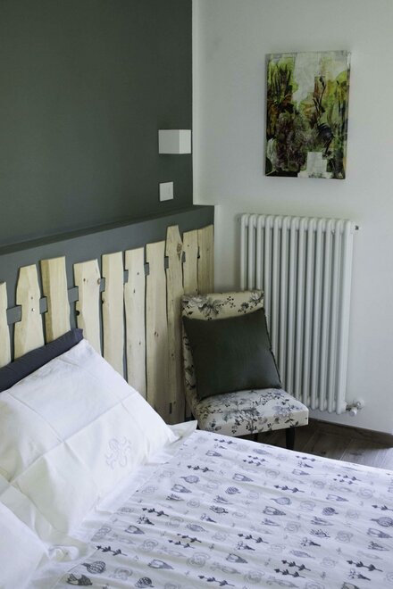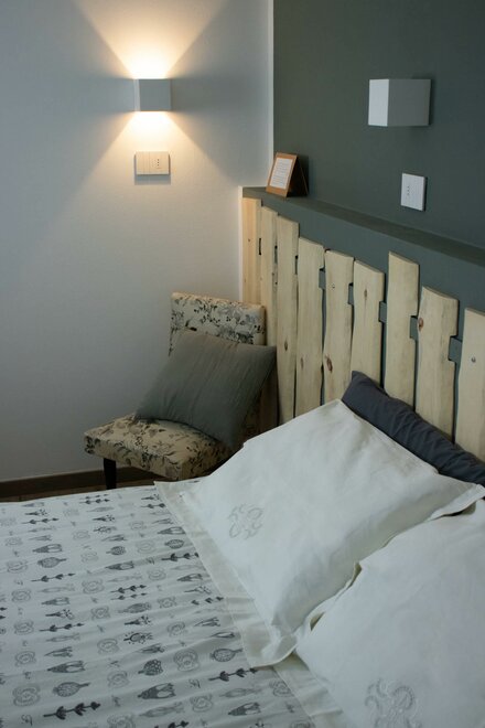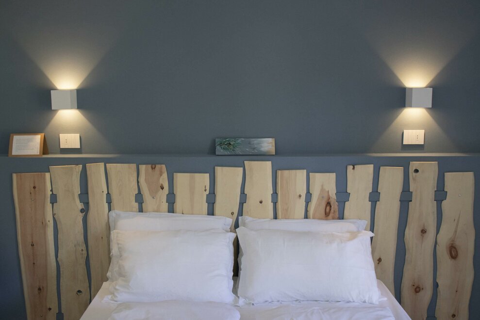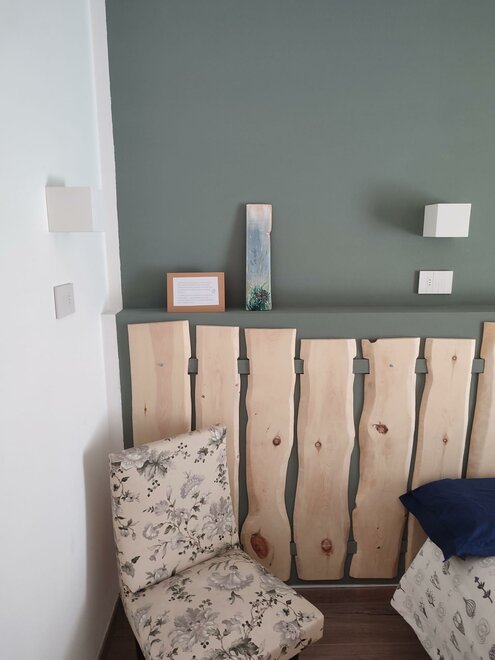 a ricordarla qui all’interno in particolare è la testiera del letto realizzata da noi … l’aspetto assomiglia un po’ ad una staccionata e speriamo che il suo caratteristico profumo possa offrirti tranquillità e riposo…