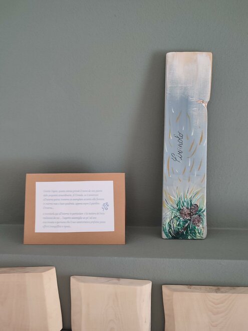 … qui all’interno trovi anche un’altra pianta, il Cirmolo … ed è suo il legno usato da noi per realizzare la testiera del letto … l’aspetto assomiglia un po’ ad una staccionata e speriamo che il suo caratteristico profumo possa offrirti tranquillità e riposo…