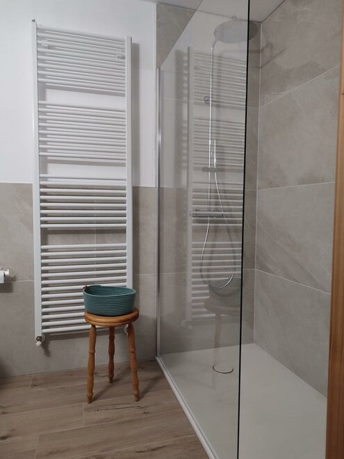 non sono presenti scale o gradini per entrare, doccia a filo pavimento, ampio spazio in doccia e bagno