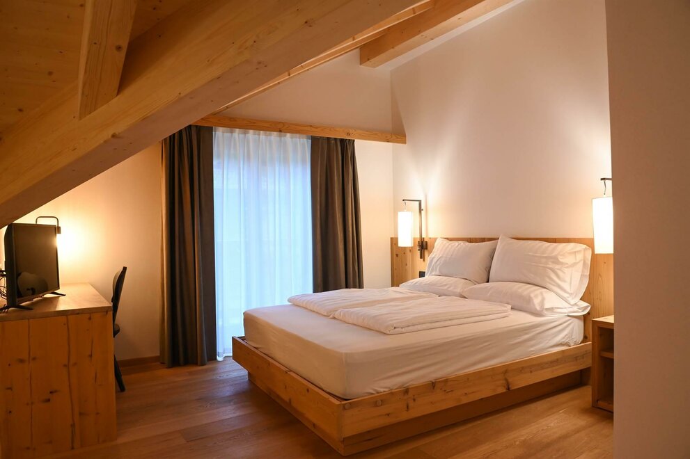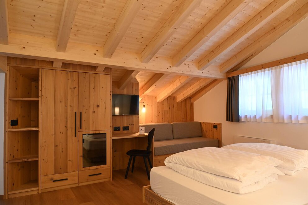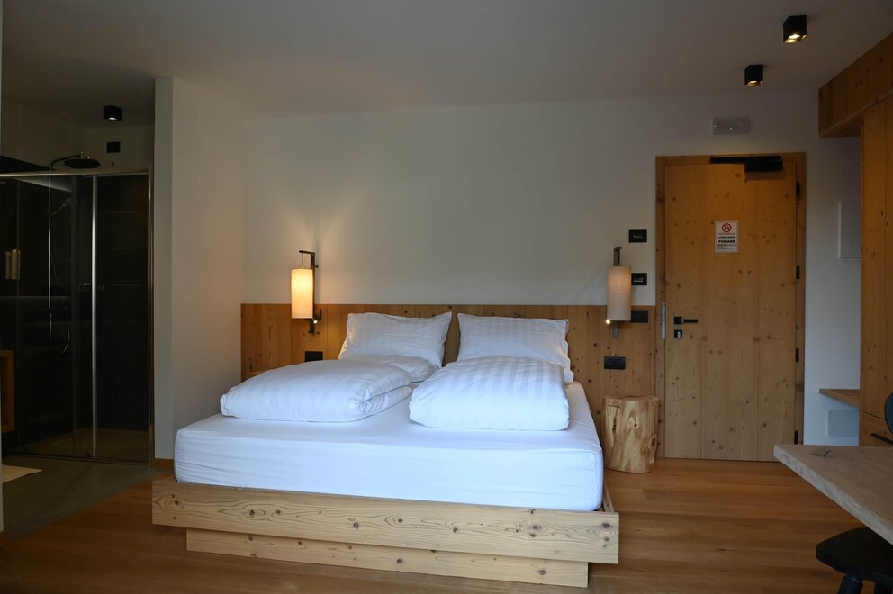 Qui comfort e calore si incontrano per offrirti il miglior riposo e momenti di vero benessere. Abbiamo scelto legno naturale di qualità per dare agli ambienti calore, autenticità e armonia, accompagnato da tessuti pregiati che rendono ogni spazio elegante e confortevole, creando un soggiorno unico e curato nei minimi dettagli.