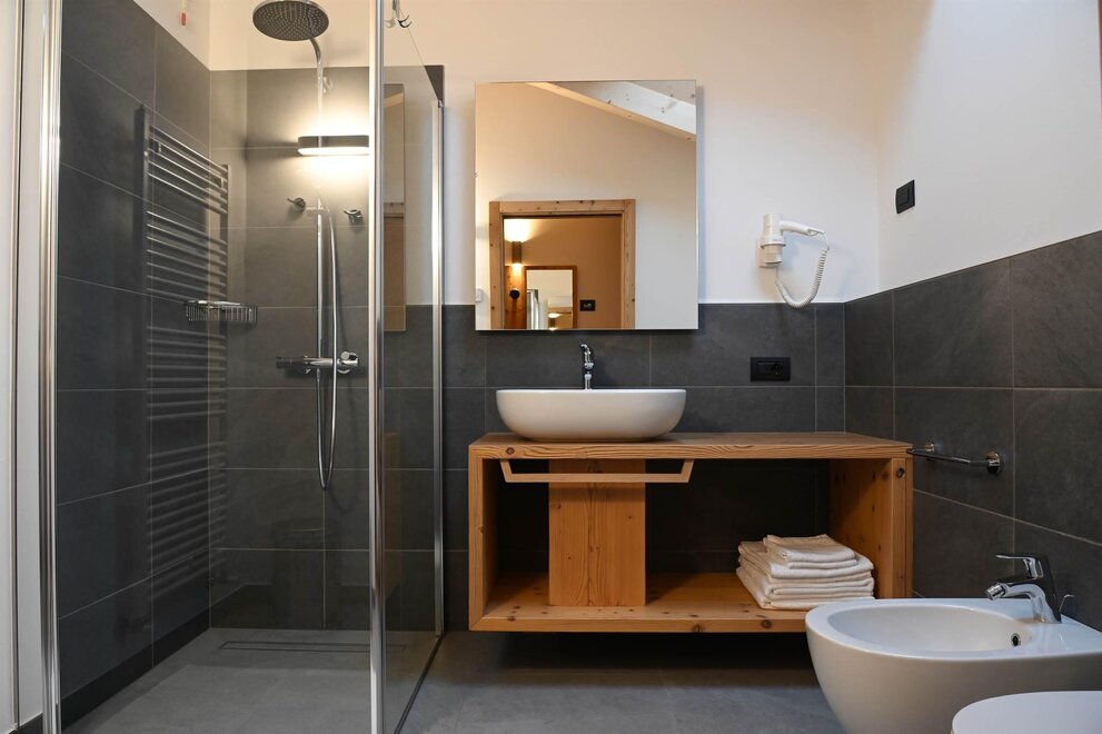 Questa camera offre un ampio bagno con spaziosa doccia, wc e bidet.Altri servizi a disposizione del cliente sono: