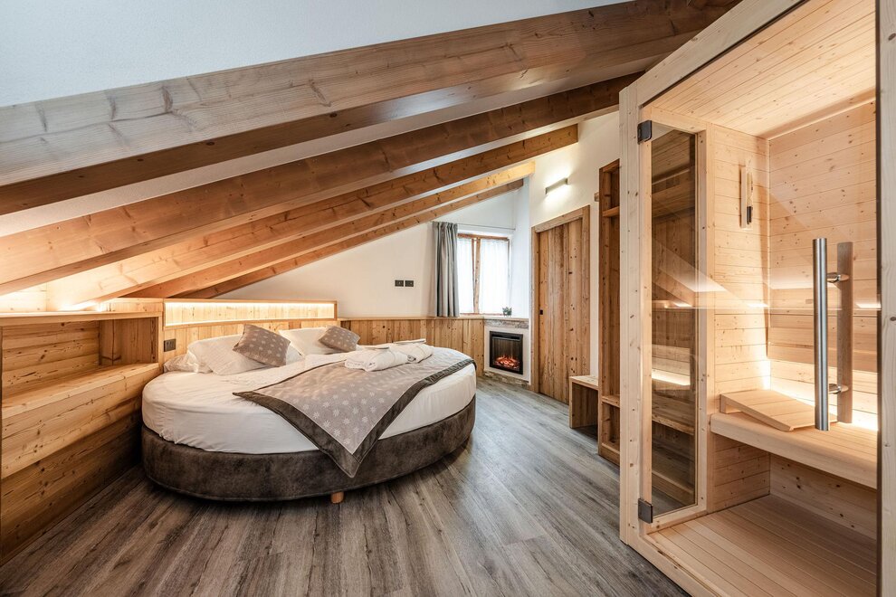 Suite Val di Sole è una nuova struttura situata ai piedi delle Dolomiti di Brenta nel Comune di Commezzadura in Val di Sole.  La Suite è circondata dal gruppo del Brenta, dell’Ortles-Cevedale e dell’Adamello Presanella. Illuminata è il nome del nuovissimo appartamento   interamente arredato in legno dai nostri artigiani di valle con maxi letto rotondo, camino a fiamma simulata doccia emozionale vasca idromassaggio Jacuzzi e sauna finlandese. Può ospitare due adulti  e un bambino. La Suite dista 1 kilometro dall’impianto di risalita Daolasa-Val Mastellina che in pochi minuti porta sulle piste da sci di Folgarida-Marilleva, Skiarea Madonna di Campiglio Dolomiti di Brenta. Mettiamo a disposizione uno Skibus privato  partenza direttamente dall’appartamento per la cabinovia di Daolasa.A pochi passi dalla struttura potrete godere del fiume Noce, il miglior fiume d’Europa per il Rafting e di una verde pista ciclabile che lo costeggia per tutta la sua lunghezza. Presso Suite Illuminata sarete circondati da ampio giardino attrezzato con gazebo, biliardino, barbecue (attivo nel periodo estivo) e chaise longue per il vostro relax.