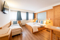 La nostra Comfort Comunicante ha due camere comunicanti. La prima ha un letto matrimoniale mentre la seconda ha due letti separati, un letto a castello oppure un letto alla francese (su disponibilità). Hanno un elegante bagno in marmo delle Alpi e bianco Carrara, doccia, phon, tv, arredamento classico e colori caldi sia per le pareti che per i tendaggi e gli accessori, pavimento parquet, soffice piumino adatto alle varie stagioni, cassaforte, free wi-fi, posizione tranquilla.