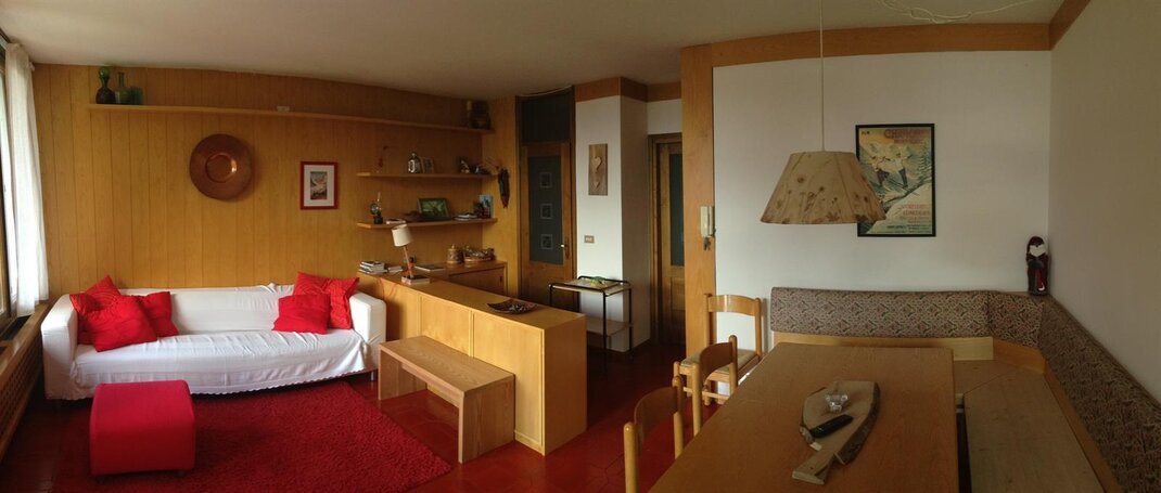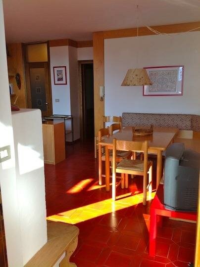 Il nostro appartamento è composto da un luminoso e panoramico soggiorno con stufa in muratura, cucinotto, un bagno con doccia e uno con vasca da bagno, una camera matrimoniale e una camera con letto a castello e letto singolo, comodo e soleggiato terrazzo, cortiletto sul retro, ampio giardino condominiale, posto auto in garage, deposito sci, lavatrice, lavastoviglie, ferro da stiro, televisione, phon, biancheria da bagno e da letto su richiesta.