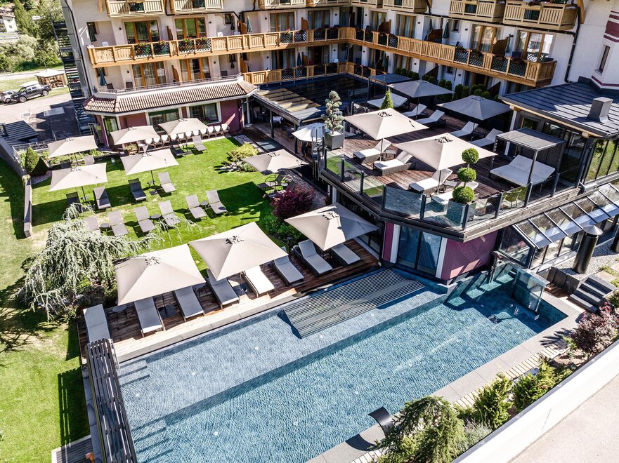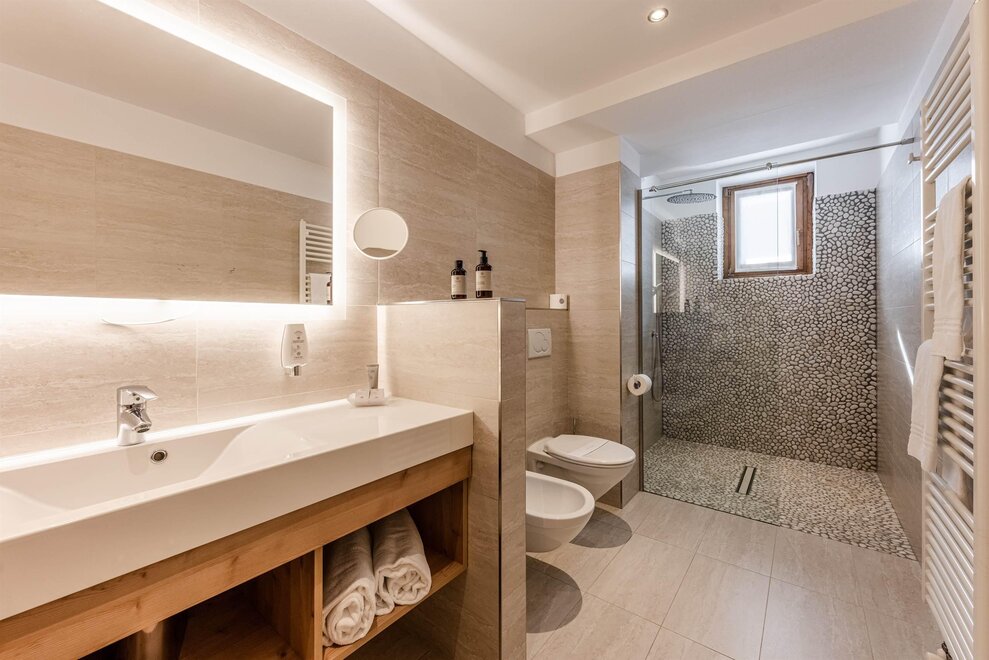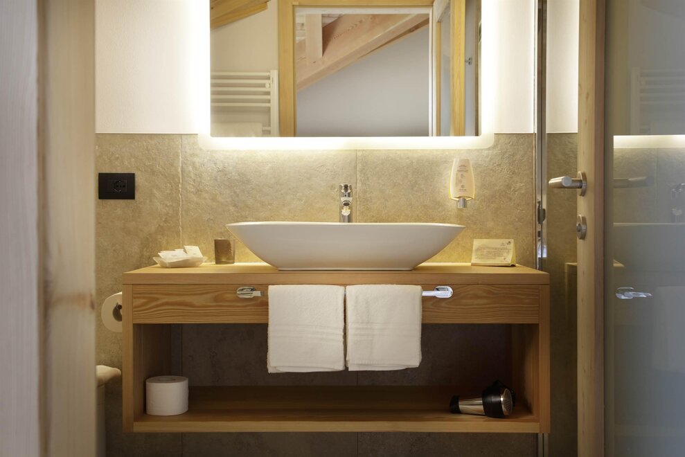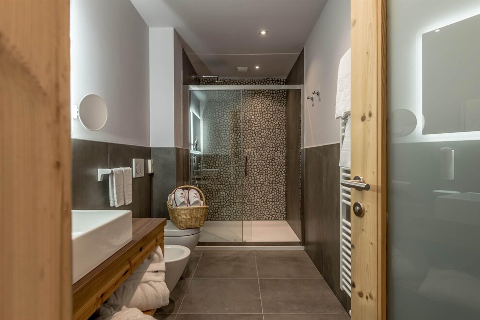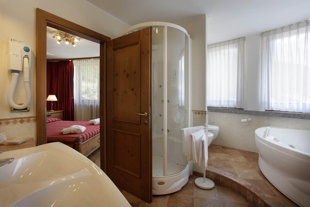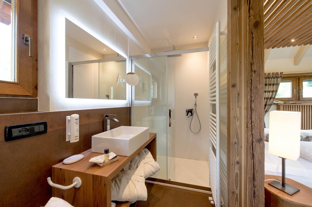 Luminosa suite recentemente ristrutturata con tipico erker tirolese, arredi in legno e due terrazze con vista panoramica. Cassaforte, telefono con sveglia, frigobar, aria condizionata, Wi-Fi e TV LCD in camera e in salotto, sistema di ventilazione controllata. Ampio bagno con doccia, asciugacapelli e set di prodotti di cortesia. Wellness bag in camera.