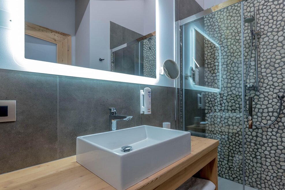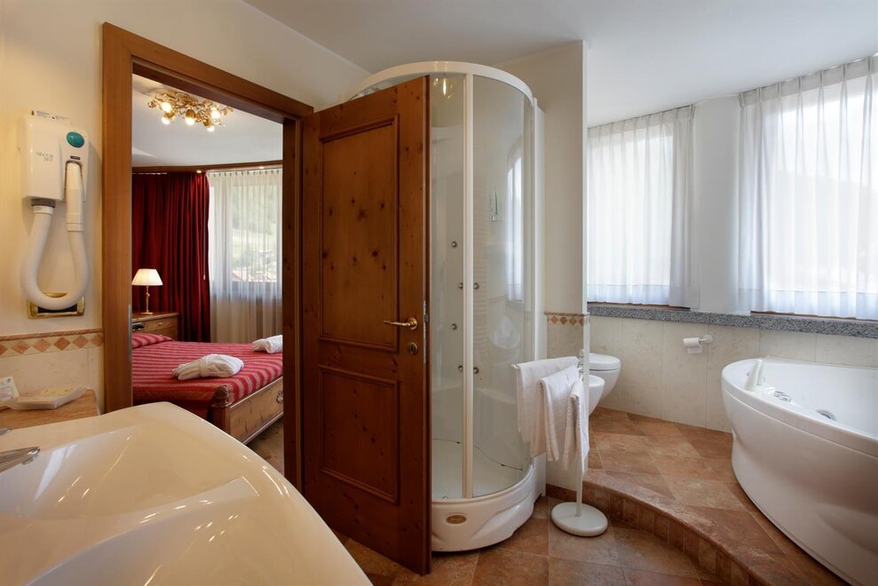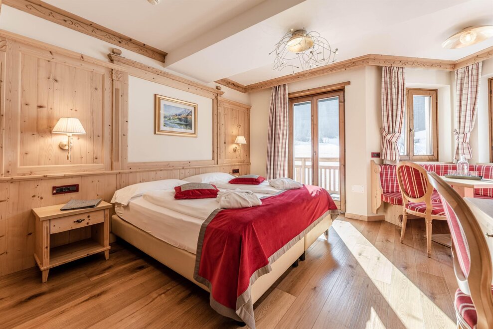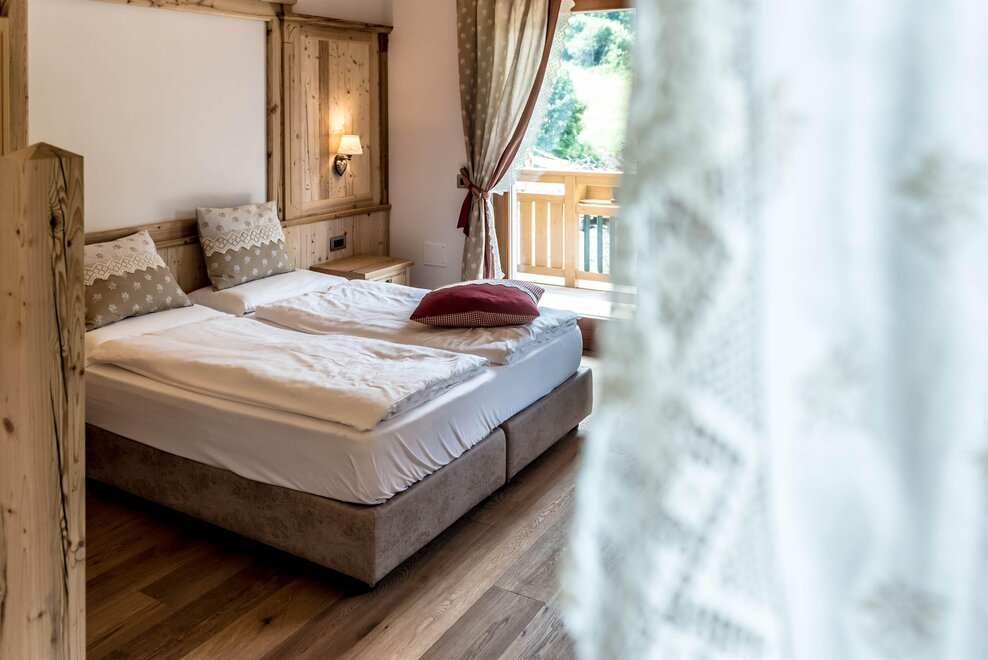 La naturale eleganza di questa stanza saprà soddisfare coloro che sono alla ricerca di una vacanza semplice e allo stesso tempo raffinata. Accoglienti camere doppie con comodo letto matrimoniale, pavimento in legno, TV, canali Sky, Wi-Fi, frigobar, balcone con sdraio e vista sulle montagne. Bagno con doccia, asciugacapelli e set di prodotti di cortesia. Wellness bag in camera.