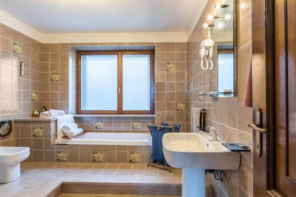 La struttura a 3 piani è composta da un'ampia zona giorno con un grande camino a legna, una cucina completamente attrezzata con lavastoviglie, 6 camere da letto e 2 bagni completi con vasca-doccia, WC, lavabo e bidet, 2 bagni minimi con lavabo e WC e può quindi ospitare 12 persone.