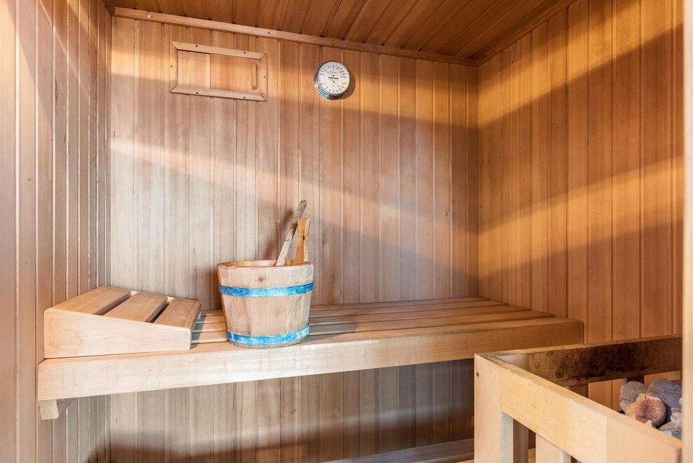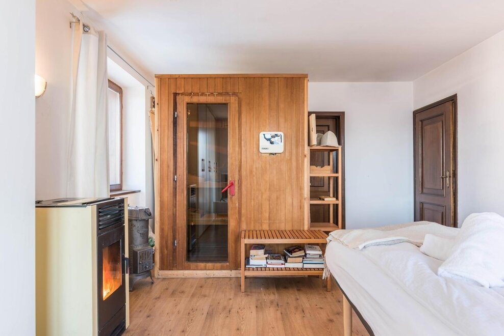Dispone inoltre di una sauna finlandese privata, una palestra privata con attrezzature di base, un deposito sci, una stube con un altro camino e una sauna.