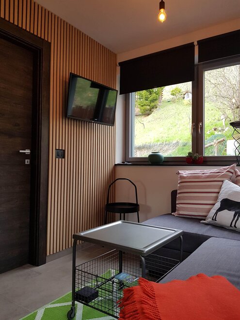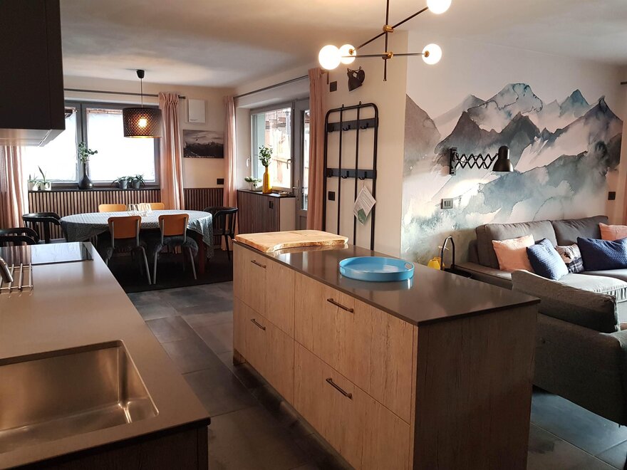 Al piano terra ci sono due appartamenti comunicanti uno per 8 persone e un altro per 2-4 persone. Al 1° e 2° piano si trova il terzo appartamento per 4-5 persone. Tutti gli appartamenti sono dotati di numerosi accessori da cucina, forno, lavastoviglie, microonde, lavatrice, TV/SAT, WI-FI. C'è un'accogliente e rilassante zona divano, dove tutti possono sedersi. Il tutto arredato in modo moderno e piacevole per farvi sentire a casa.