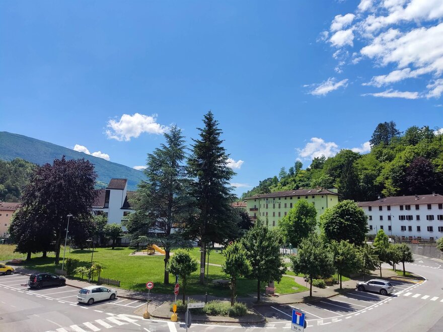 Gli appartamenti si trovano nel caseggiato giallo che si affaccia su piazza Mercato a fianco del ponte pedonale delle tre arche, da cui si accede al parco termale. A piano terra del caseggiato trovate il negozio del panificio pasticceria e caffetteria Zanoni, mentre a pochi minuti si trovano il negozio di ortofrutta e generi alimentari vari, la cartolibreria e negozi vari. Gli appartamenti godono di un'ottima vista sul giardino di piazza Mercato e sul fiume Sarca.