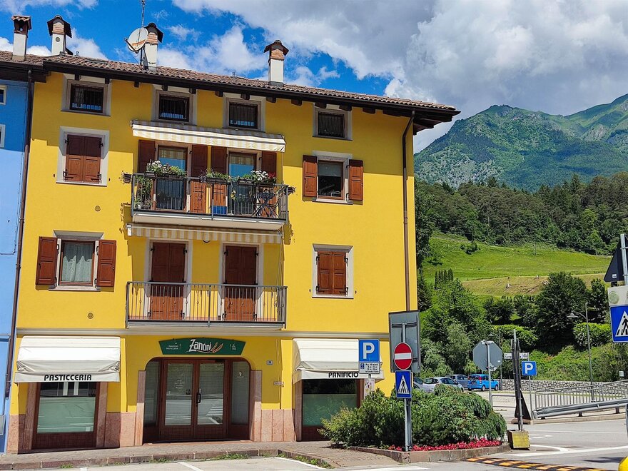 Gli appartamenti si trovano in Piazza Mercato a Ponte Arche, negozio del panificio pasticceria e caffetteria Zanoni.