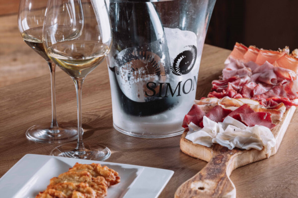 Nell’accogliente cantina di famiglia, Michele ti racconterà la storia dell’azienda e dei suoi prodotti con un aperitivo tutto trentino. L’Aperitortel è una specialità della Cantina Simoni ma soprattutto è il modo giusto per godersi una serata all’insegna dei sapori semplici e tradizionali. Qui gusterai una tipica frittella di patate: il tortèl di patate di mamma Romana… accompagnato da salumi, formaggi e due vini abbinati. In Valle di Cembra l’Aperitortel di questa cantina è un appuntamento imperdibile! Scoprirai perché... Buona degustazione!