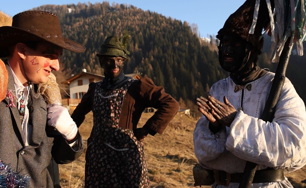 Il martedì grasso, nelle ore antimeridiane, i tre personaggi iniziano la vestizione nel maso più alto del paese Vròttn e subito cominciano il loro percorso che gli porta di maso in maso a "seminare" fertilità e abbondanza. I due tendono a progredire di corsa e con grandi balzi, mentre il terzo li segue a distanza camminando lungo i più comodi sentieri e raccogliendo dalle famiglie le offerte in uova.