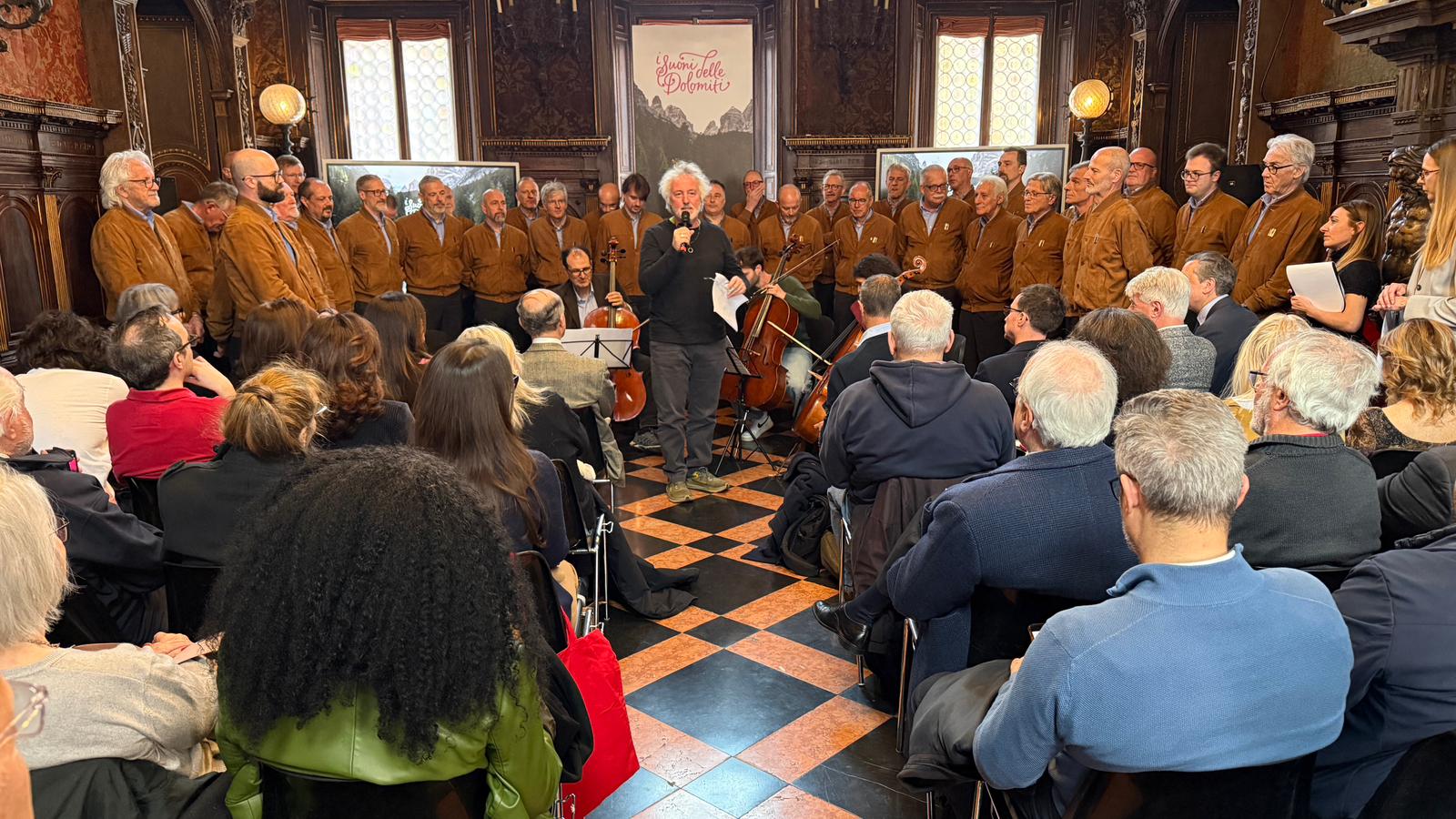 Subito dopo sono intervenuti Mario Brunello, direttore artistico del Festival, e Andrea Zanotti, presidente del Coro SOSAT, che hanno raccontato ai presenti il significato di questo momento musicale, simbolo della profonda relazione tra tradizione corale, musica e paesaggio alpino che da sempre caratterizza I Suoni delle Dolomiti. A seguire è intervenuto Antonio D’Amico, direttore del Museo Bagatti Valsecchi.