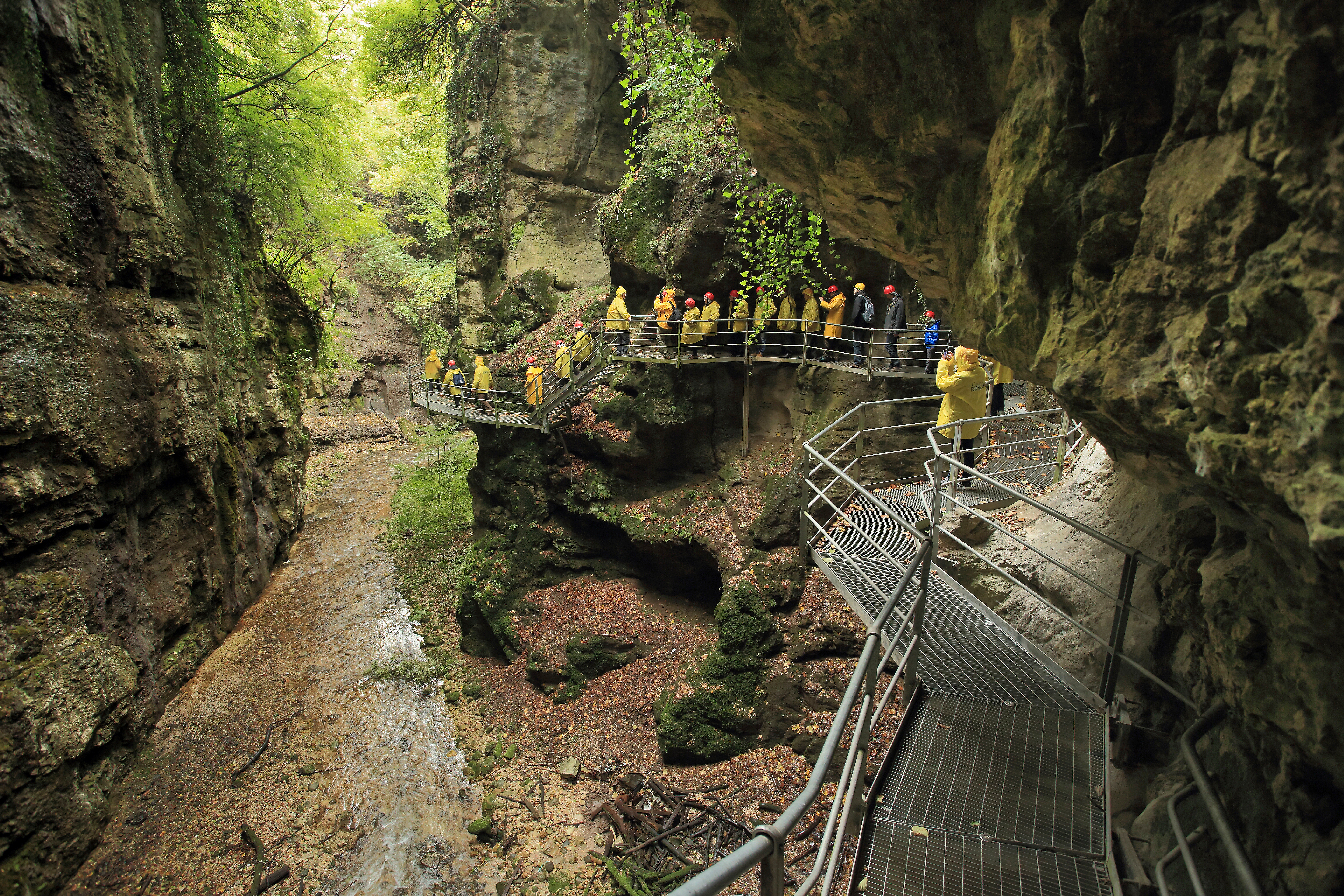 Il Canyon Rio Sass è uno dei due spettacolari canyon visitabili della Val di Non, attrezzato con passerelle e scalinate ancorate alla roccia. L’ingresso è a Fondo (Borgo d’Anaunia), nel rione “Giò a l’aca”, dove la visita guidata prende avvio dal centro accoglienza con la consegna di casco e mantellina. Prima di scendere nella forra, la guida introduce storia e punti chiave del percorso. Si entra quindi nel canyon lungo passerelle metalliche a grata, con tratti sospesi fino a 25 metri sopra il torrente. L’itinerario richiede circa 2 ore, per 2,5 km e 1.200 gradini, con 140 metri di dislivello complessivo (discesa all’andata, risalita al ritorno). Le visite si svolgono mattino e pomeriggio e sono su prenotazione: 0463 850000. Nel periodo estivo è possibile abbinare, alle 9.00, una visita con degustazione alla Latteria Sociale di Fondo, seguita dall’escursione nel canyon.