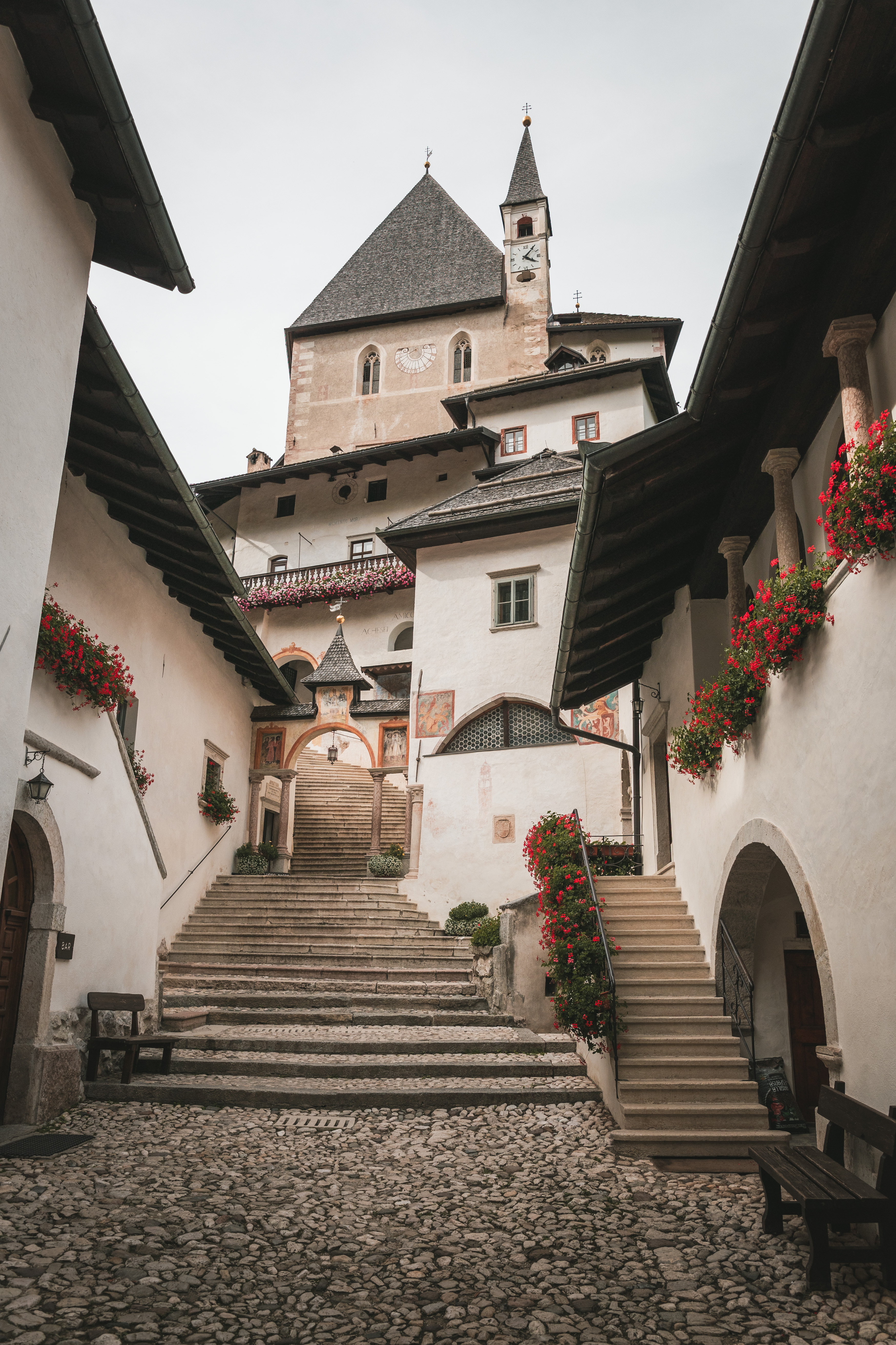 Il punto di partenza è Sanzeno, centro spirituale della valle, dove si trovano la Basilica dei Santi Martiri e il Santuario di San Romedio, uno degli eremi più suggestivi dell’arco alpino. Da qui il cammino compie un grande anello che, in sette tappe per un totale di 150 chilometri, collega alcuni dei luoghi più significativi dal punto di vista storico e culturale: il Santuario della Madonna di Senale, la chiesa di San Marcello a Dardine, San Martino a Vervò, l’eremo di San Pancrazio e la chiesa di San Bartolomeo a Romeno, fino al rientro a San Romedio. Per chi desidera una versione più breve, è possibile completare un anello di tre giorni, rientrando a Sanzeno da Rumo.