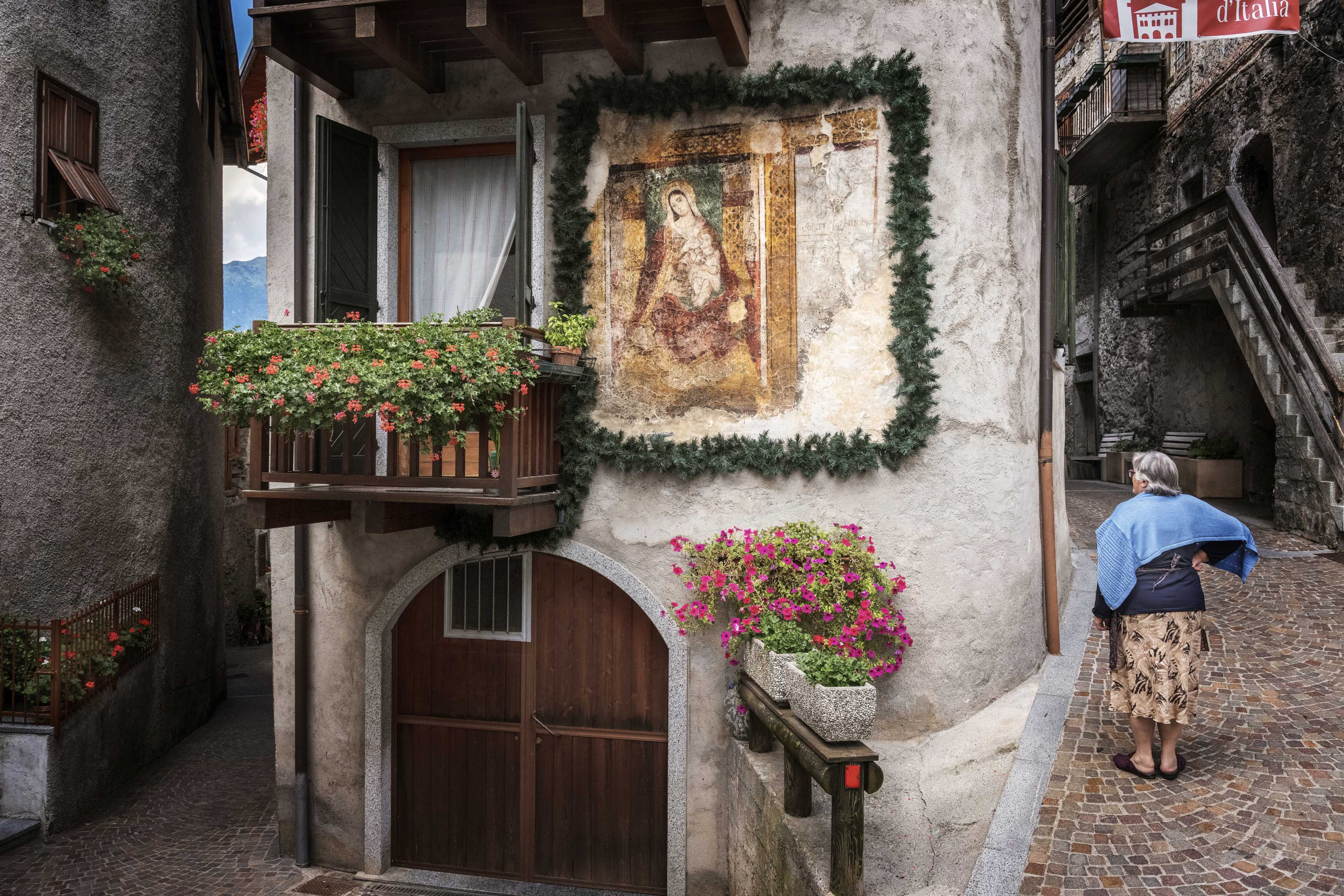 Bondone, borgo sopra le nuvole, è il comune più a sud in Valle del Chiese, affacciato sulla sponda nord del Lago d’Idro, al confine con la Lombardia e nasce storicamente come paese di carbonai. Qui, percorrere le strette strade selciate, passare sotto archi, prendere per viottoli che si trasformano in ripidi scalini tra le case, sfiorare i muri a secco coperti di muschio, ammirare gli affreschi che decorano alcuni edifici come la “Madonna in Trono” (XVI secolo), è come compiere un viaggio a ritroso nel tempo, a stagioni lontane e dure. Quando, cioè, i carbonai e le loro famiglie vivevano qui solo per quattro mesi e nei restanti si spopolava, sprofondando nel silenzio. Lungo la strada che sale a Bondone, aggrappato ad uno sperone roccioso, si incontra anche Castel San Giovanni, antico maniero della Famiglia Lodròn.