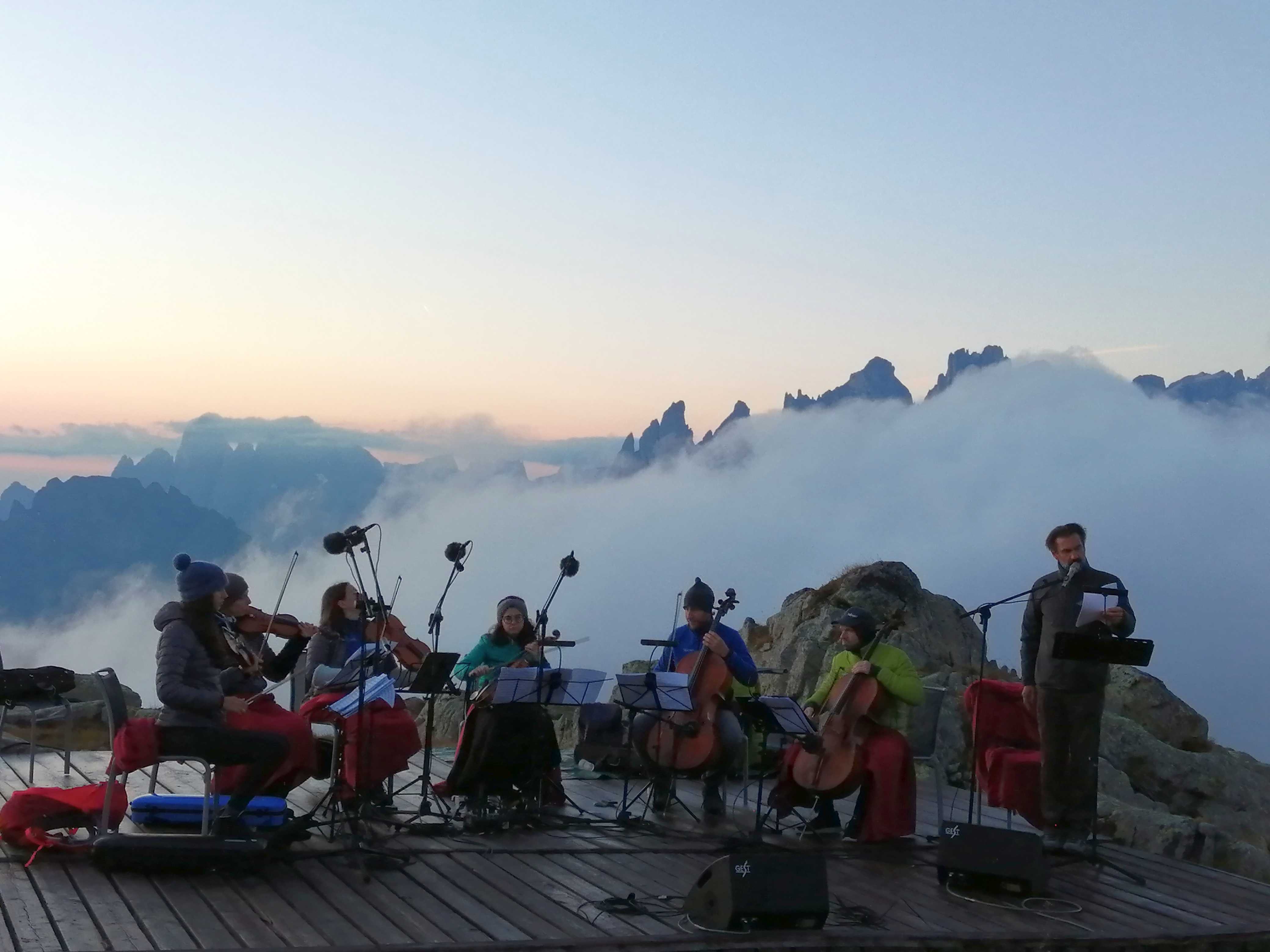 Ad affiancare le note dei diversi movimenti il racconto, tratto dal testo di Sandro Cappelletto, scrittore e storico della musica, di un Beethoven inusuale, privato e dissacrante, visto attraverso gli occhi del nipote Karl, e restituito in questa inedita quotidianità del grande artista attraverso le parole tratte dai quaderni di conversazione e dai diari. A dare voce a questa narrazione, in cui è emerso il rapporto non privo di conflitti tra il grande compositore e il nipote è stato l’attore Fabrizio Gifuni. E tutt’intorno lo spettacolo delle Dolomiti con le Pale di San Martino che hanno giocato a nascondino con i vapori e le nebbie del mattino salite come i crescendo delle note.