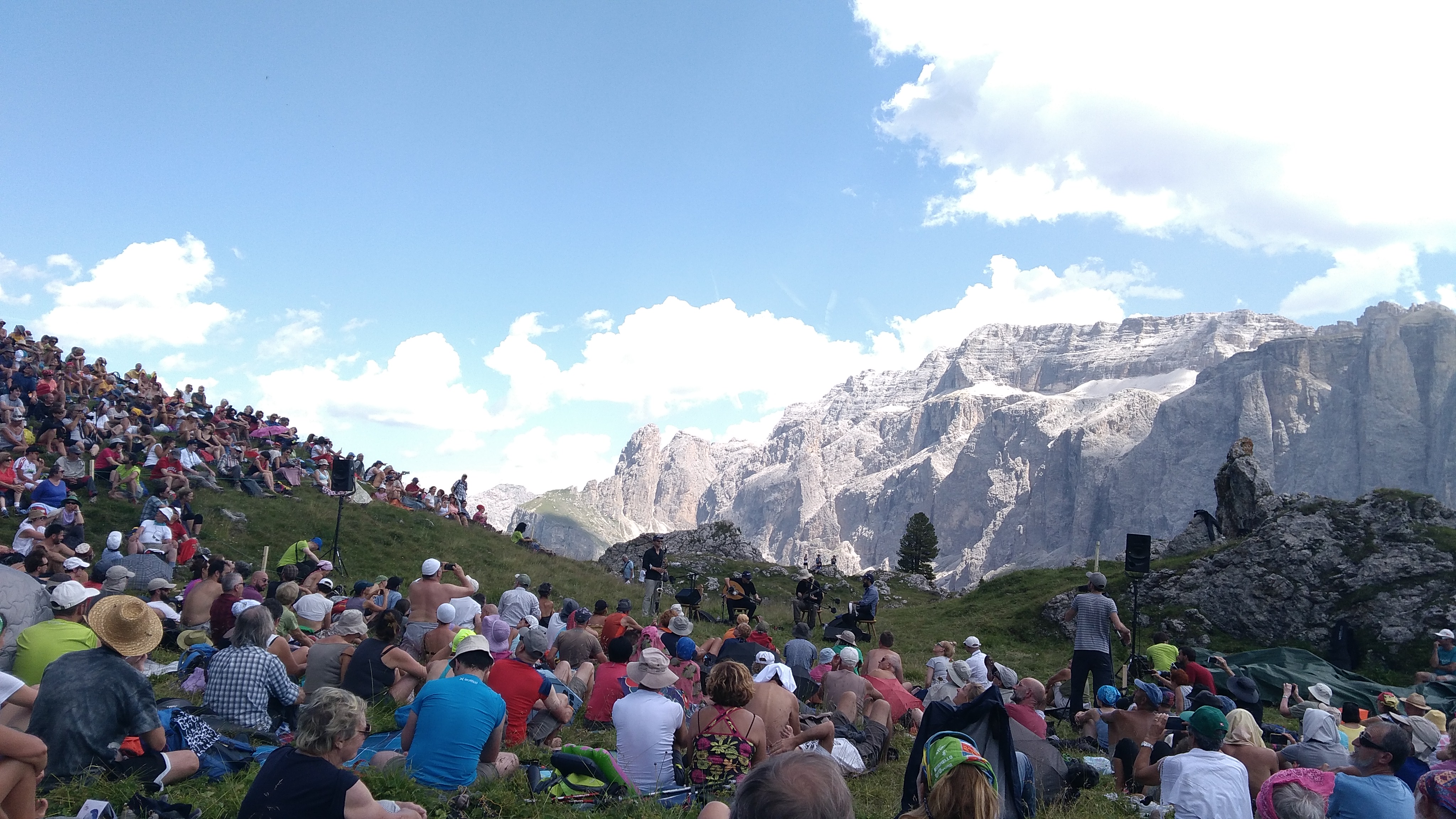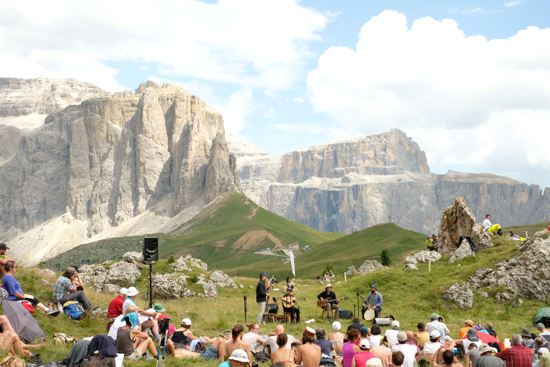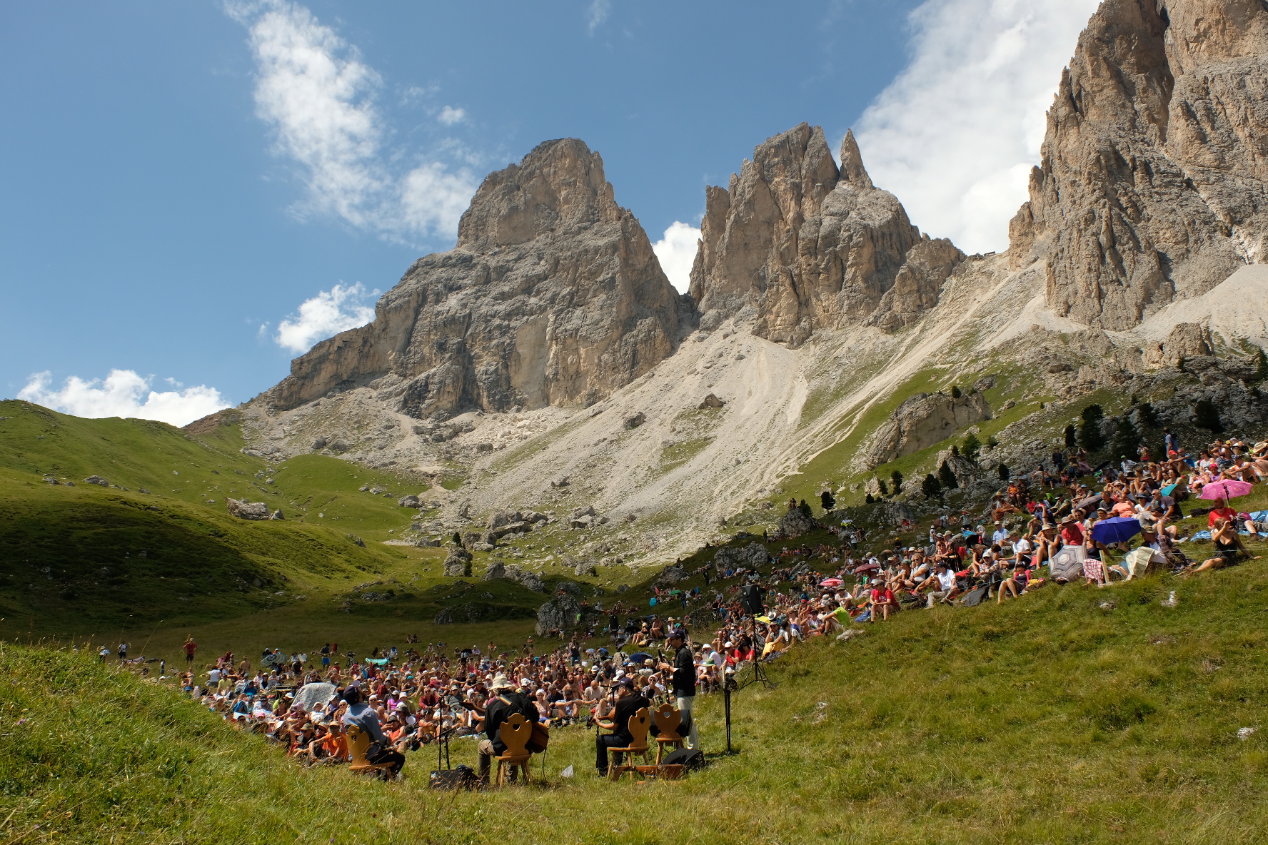 Il sodalizio tra il festival di musica in quota I Suoni delle Dolomiti e #Dolomitesvives, che pone al centro la sostenibilitá nel rapporto tra l'uomo e le Dolomiti, ha preso forma oggi 2 agosto nello splendido concerto di Anouar Brahem a Passo Sella. Accanto al famoso musicista e virtuoso di oud, un combo di grandissimo valore a partire dal compagno di tante avventure Björn Meyer al basso, Klaus Gesing al clarinetto e Khaled Yassie a dabouka e bendir. A fare da corona al numeroso pubblico e ai musicisti alcune delle cime più belle e famose delle Dolomiti come le Torri del Sella, il Gruppo del Sassolungo e il Pordoi.