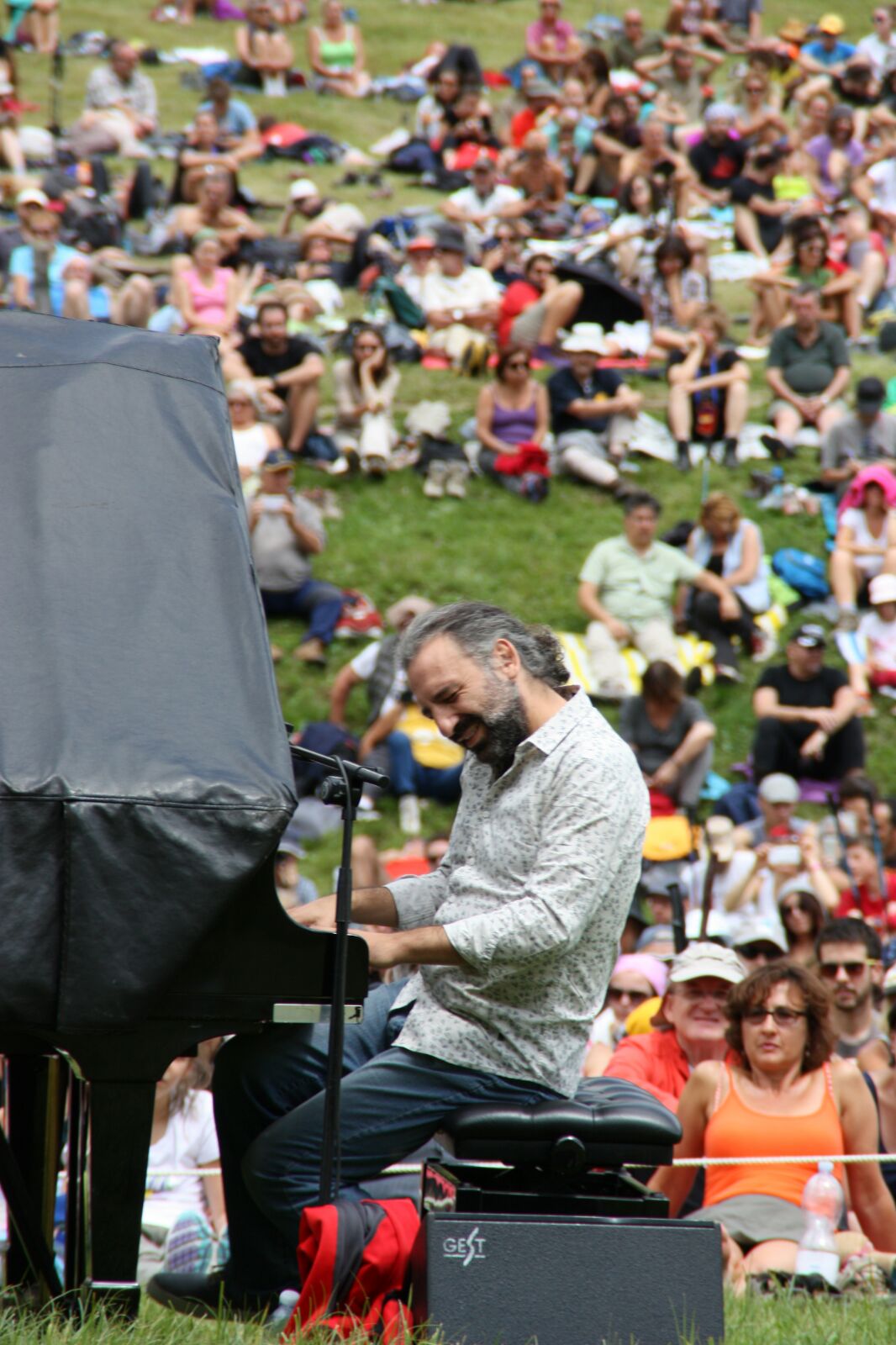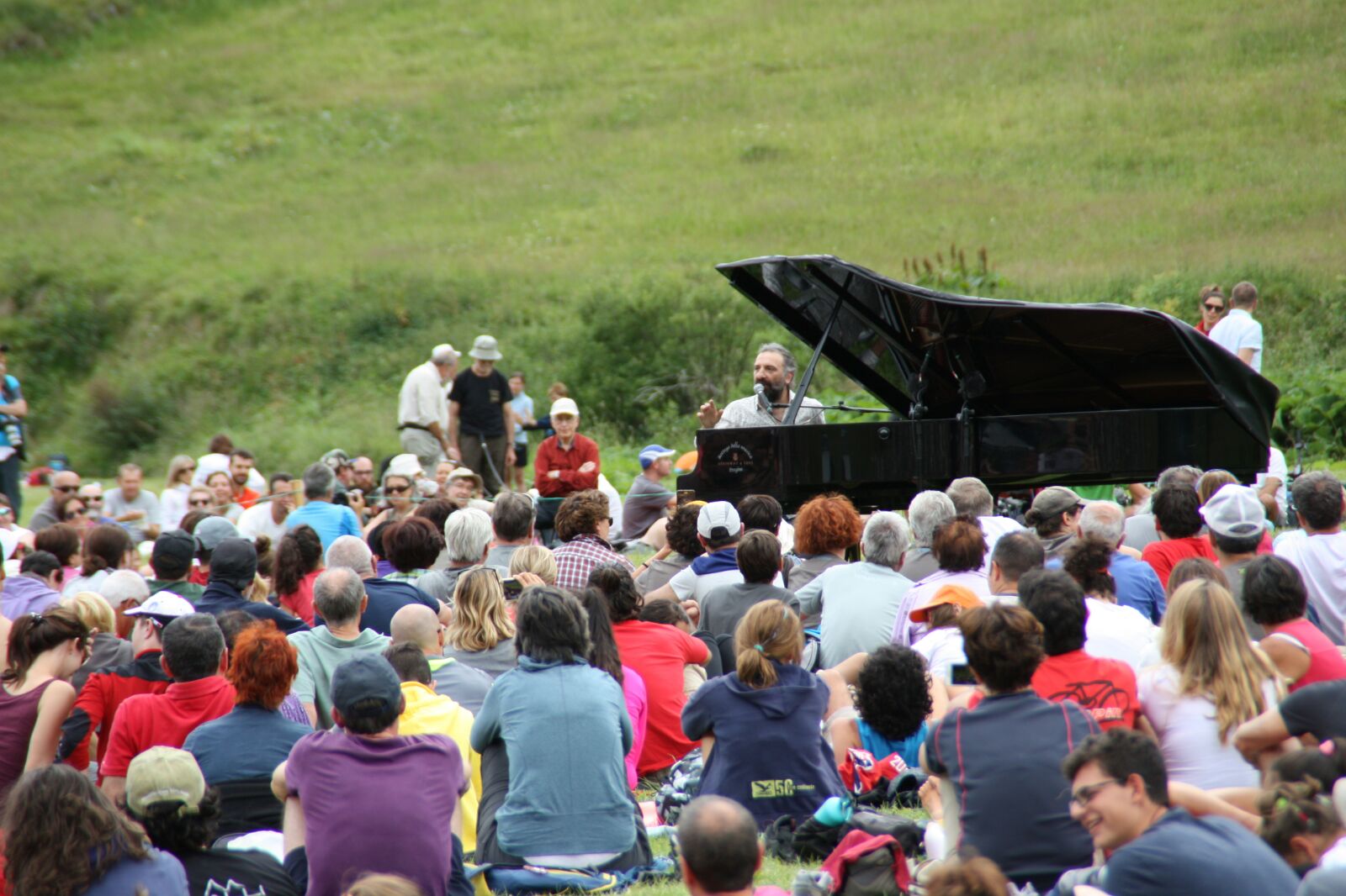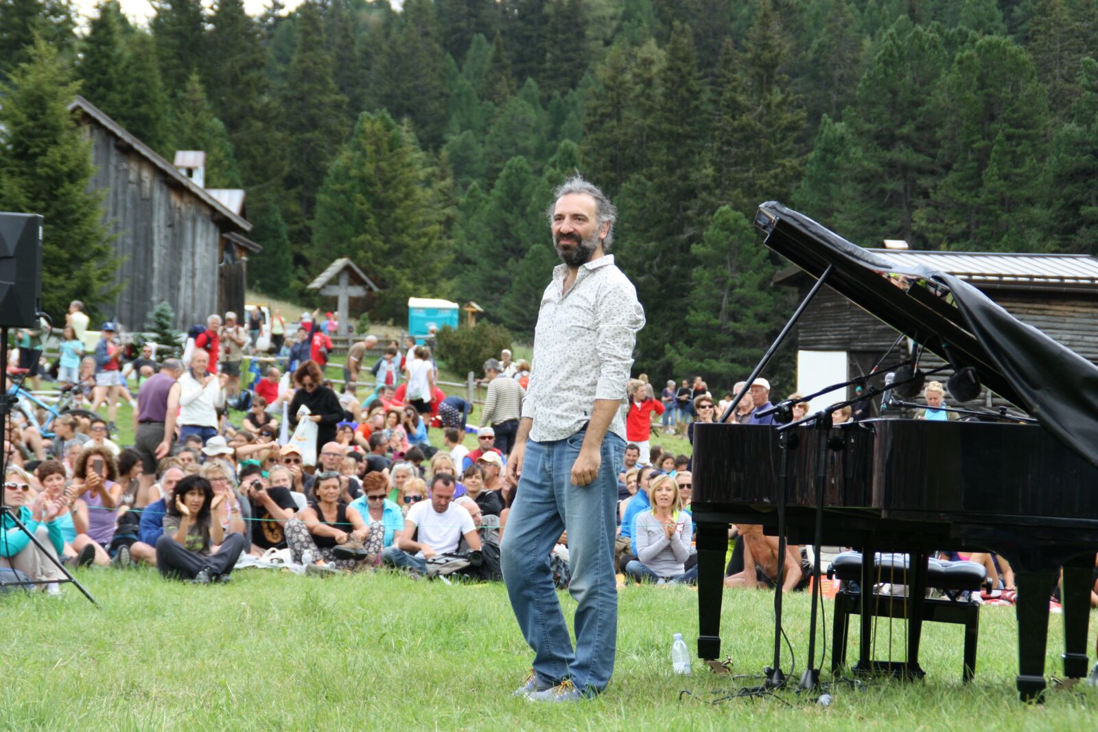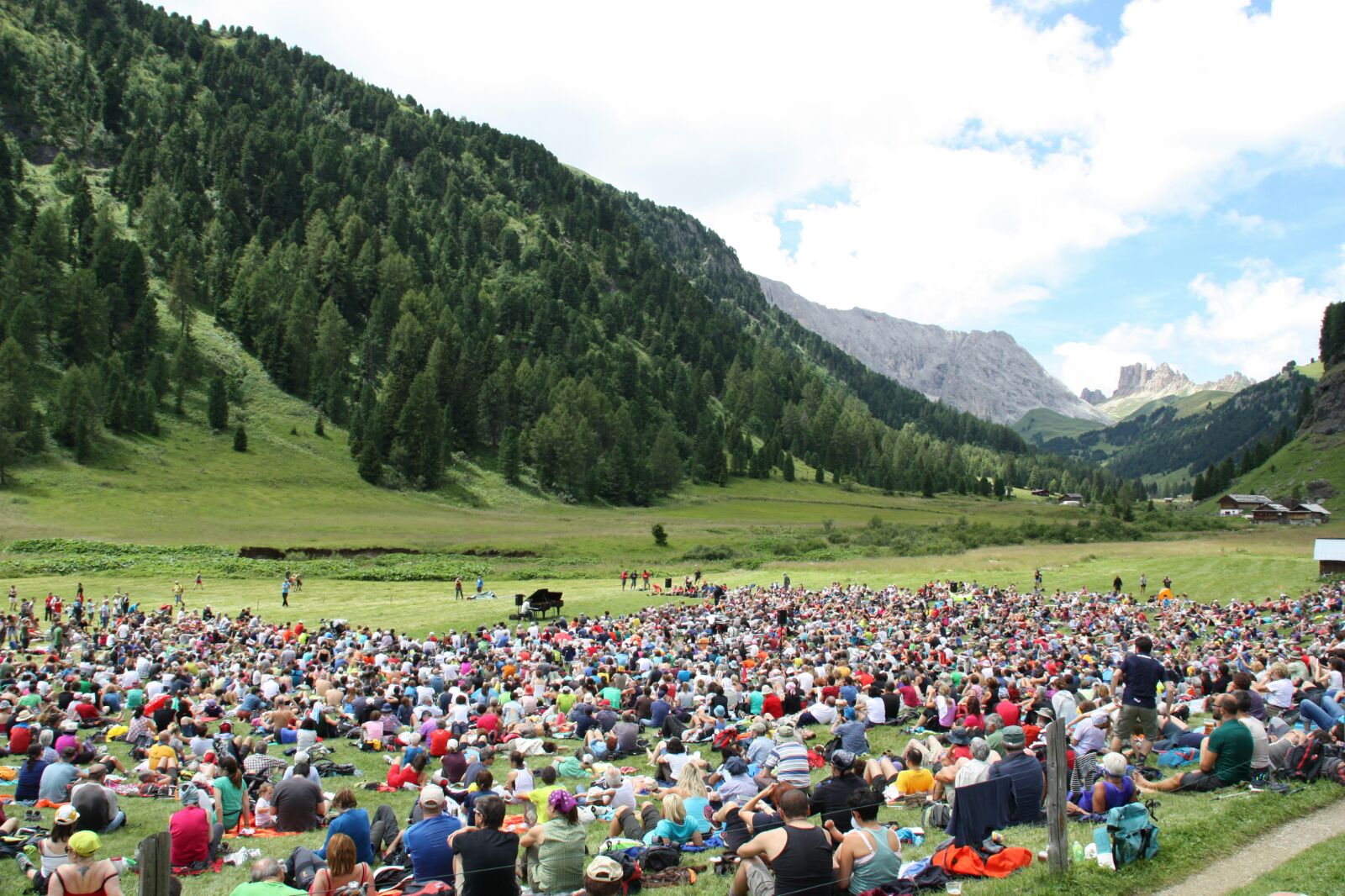 L’istrionico pianista milanese si è esibito davanti a circa 4000 spettatori sui prati della Val Duròn ai piedi del Catinaccio e del Sassolungo. Un concerto di ben due ore fatto di tante note e di tanti percorsi tra i generi più diversi, dal jazz ai ritmi brasiliani, dalle reinterpretazioni di canti popolari e filastrocche, alle sigle televisive e alle musiche da film