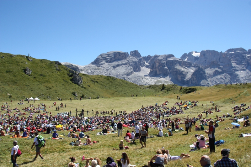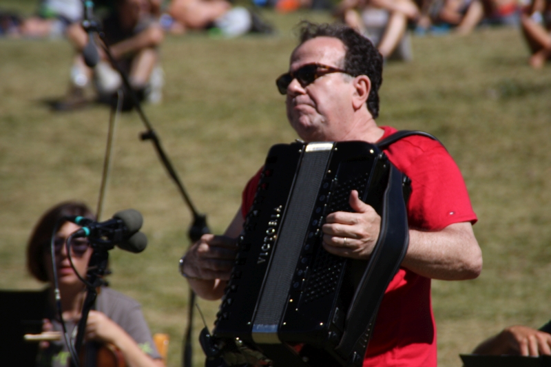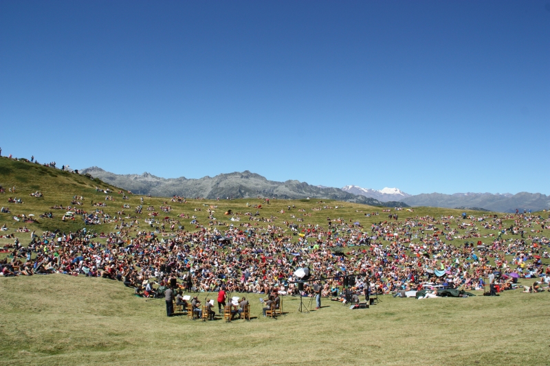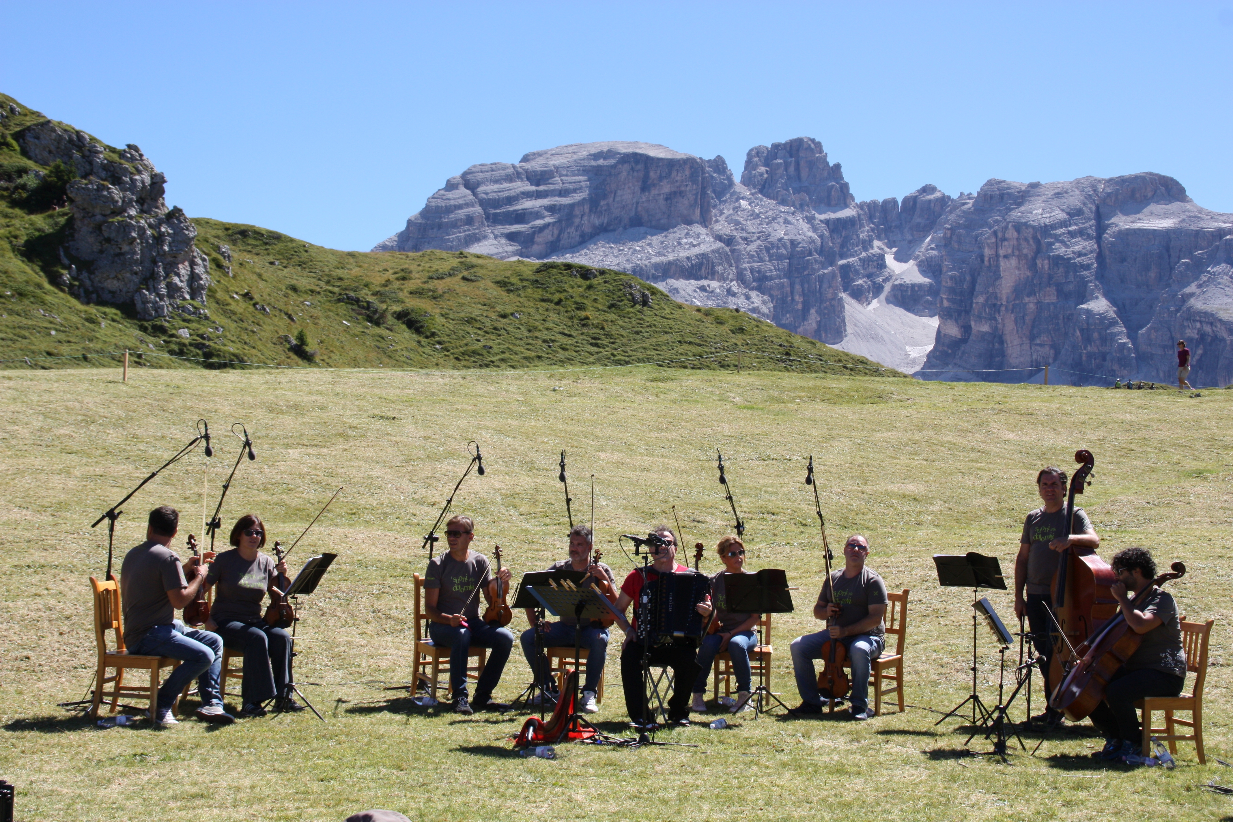 Uno spettacolo straordinario con un cielo terso e senza nuvole, l'orizzonte aperto sui gruppi di Brenta, Adamello e Presanella, hanno accolto Richard Galliano e l'Ensemble Symphony Orchestra che con un'ora e mezza di musica hanno salutato il popolo de I Suoni delle Dolomiti accorso a Camp Centener, in Val Rendena. Quello di oggi era il penultimo appuntamento della kermesse trentina di musica in quota che chiuderà l'edizione 2016 in Val di Fassa, venerdì 26 agosto.