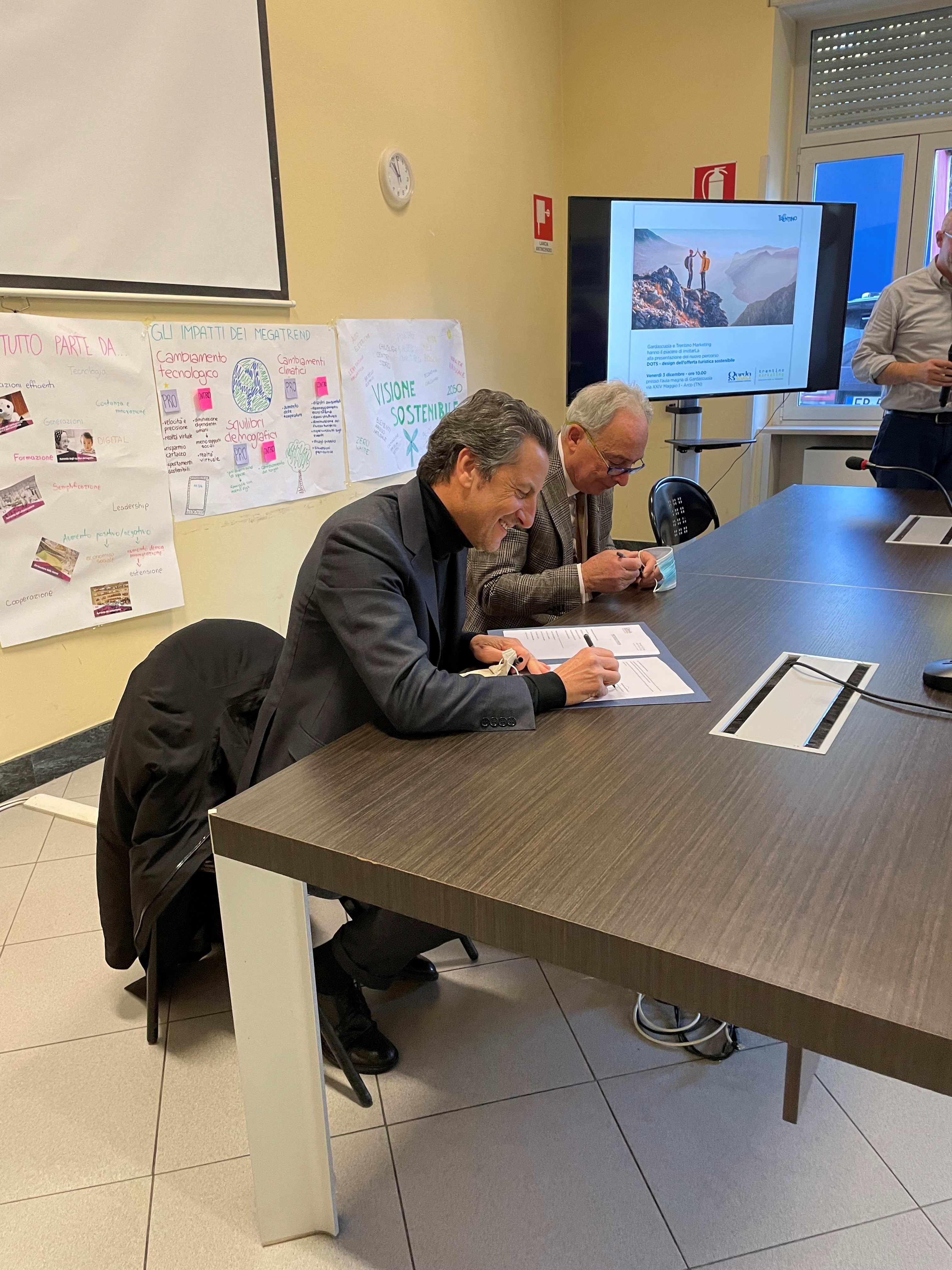 Questa mattina, nell’Aula Magna dell’Istituto Gardascuola di Arco è stato sottoscritto un protocollo d’intesa da parte del Presidente della Cooperativa Gardascuola Carlo Modena e l’Amministratore delegato di Trentino Marketing Maurizio Rossini.
