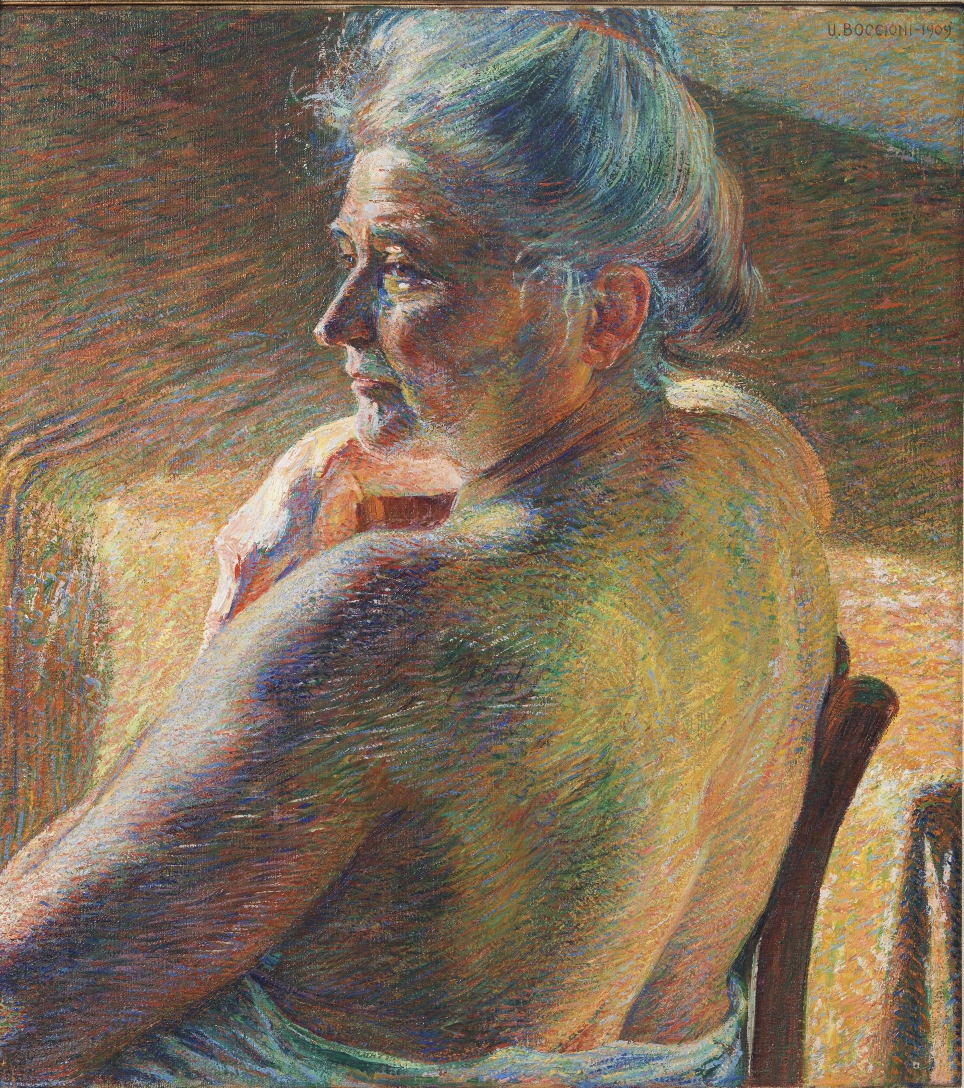 L’attività di Boccioni viene esplorata a Rovereto attraverso accostamenti con le opere di maestri antichi e contemporanei. Si tratta di una mostra di studio ricca di novità documentarie che intende offrire un percorso nel quale emergono le memorie e le fonti visive dell’artista. L’esposizione si basa sul rinvenimento di una serie di scritti e documenti inediti riscoperti di recente presso la Biblioteca Civica di Verona e sull’eccezionale corpus dei disegni boccioniani del Castello Sforzesco, integrati dai documenti provenienti dai fondi archivistici dell’Archivio del ’900 del Mart di Rovereto e da alcuni dipinti determinanti nella produzione dell’artista. In mostra, per esempio, il Nudo di spalle (Controluce) (1909), proveniente dalle collezioni del museo, ma anche Forze di una strada (1911) del City Museum of Art di Osaka, Costruzione spiralica (1913-1914) del Museo del Novecento di Milano e la celeberrima scultura icona della plastica futurista e riprodotta sulle monete italiane da 20 centesimi di euro, Forme uniche della continuità nello spazio (1913), presentata in una fusione surmoulage del 1972 proveniente dall’Israel Museum di Gerusalemme.