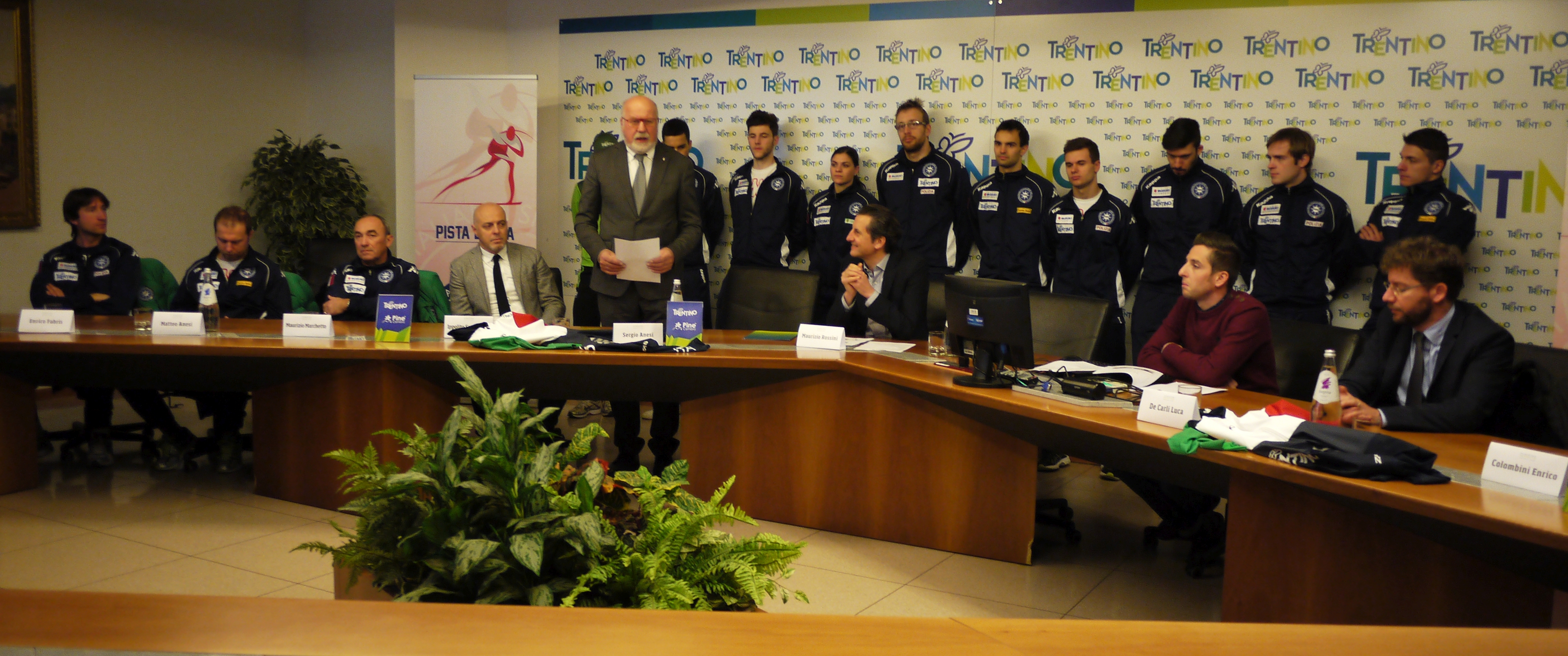 Nel corso della conferenza stampa tenutasi oggi a Trentino Marketing hanno portato il proprio saluto anche Giorgio Torgler, presidente del Coni provinciale, Enrico Colombini, presidente dell’Ice Rink Piné, Maurizio Marchetto, allenatore e direttore sportivo della Nazionale pista lunga e Ippolito Sanfratello, segretario generale della Fisg.