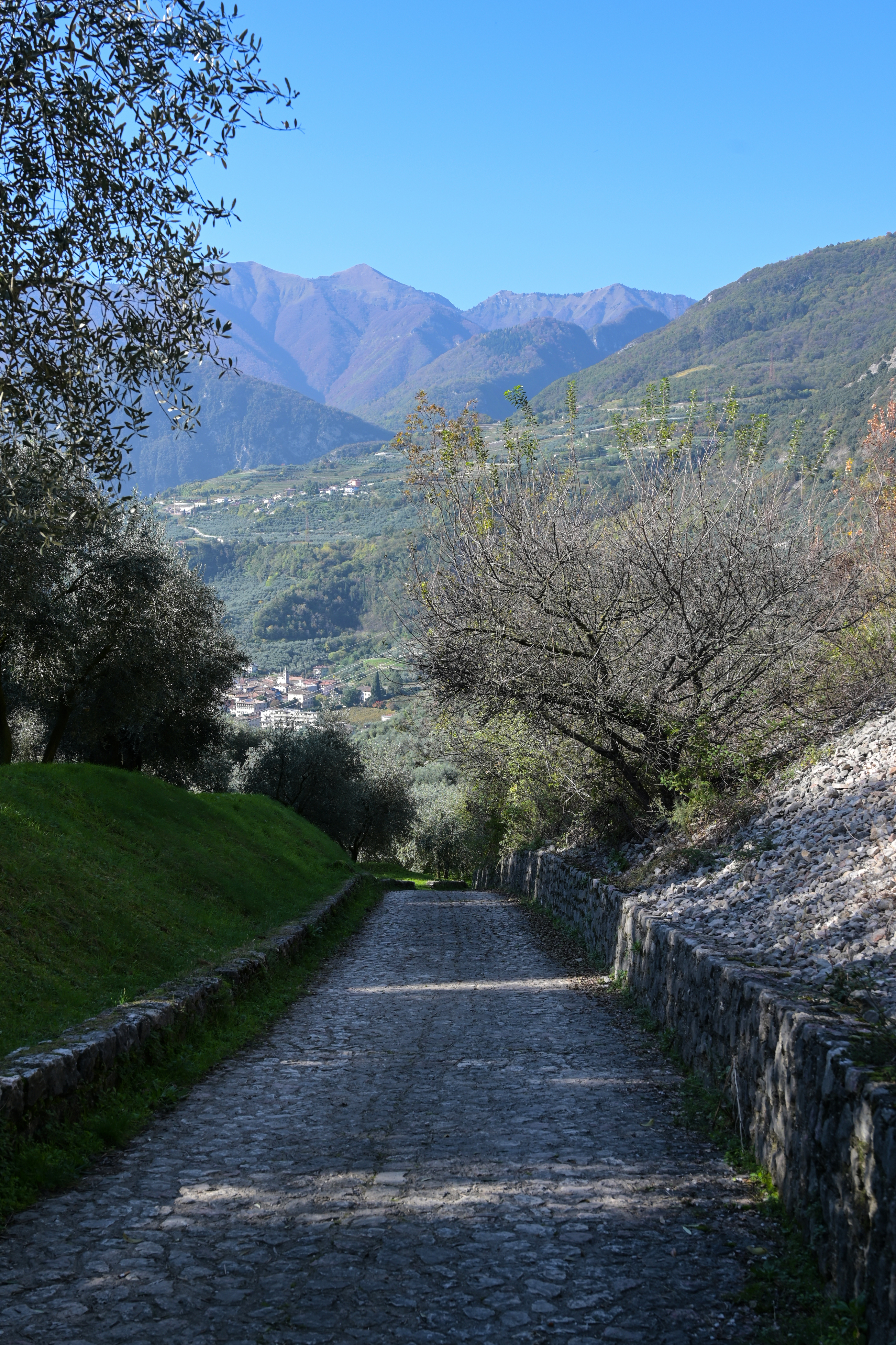 Si imbocca poi il sentiero che scende sulla destra verso il paese di Vigne e si supera la chiesa, ricominciando a salire verso il Dosso di Romarzollo, una collina coltivata ad olivi tra Vigne e Arco. Una volta superato il dosso, si lascia alle spalle l’olivaia e ci si avvicina al centro città per tornare al punto di partenza.