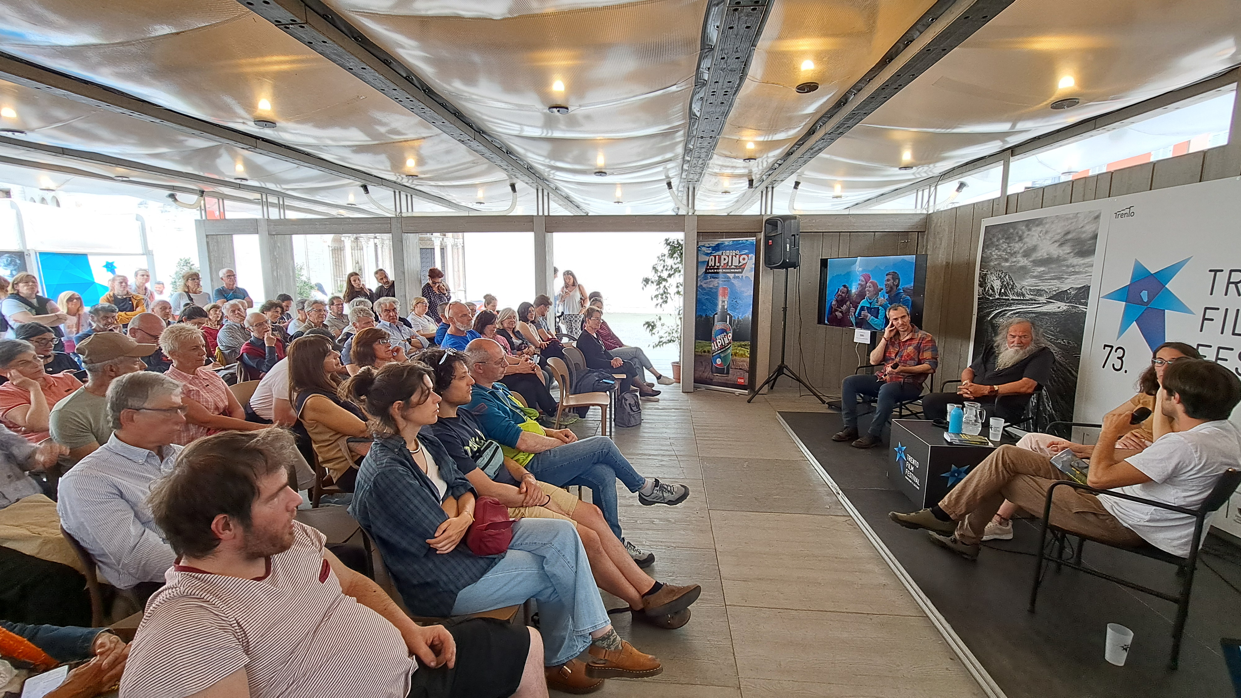 Sollecitati dalle domande di Pietro Lacasella, gli autori hanno poi spiegato l’idea che ha guidato il loro lavoro nella narrazione, anche attraverso le immagini, dei territori toccati dal Sentiero della Pace in Trentino.