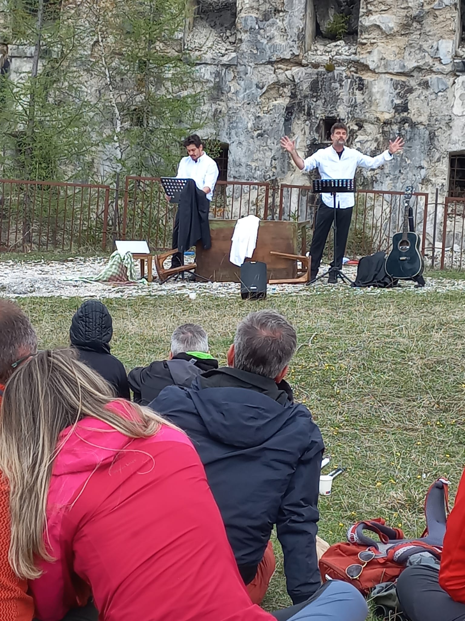 Qui ad ore 14.30 è previsto lo spettacolo della Compagnia (S)legati "A (s)ragionar di guerre", un evento gratuito aperto a tutti. Gli attori protagonisti Jacopo Bicocchi e Mattia Fabris hanno costruito un percorso che, a partire dalla prima mondiale, giunge fino alla testimonianza del pilota di droni statunitense che, seduto davanti al monitor della sua postazione in Texas, controlla velivoli adibiti all’attacco aereo in Afganistan…dall’altra parte del globo. Il tutto passando attraverso le parole di Emilio Lussu, Remark, Gino strada, Rodari, Gaber, Bruce Springsteen, Foster Wallace ed altri. Un piccolo viaggio dentro al tema della guerra…e, per differenza o conseguenza, anche della pace. Il rifugio è accessibile soltanto a piedi, percorrendo il sentiero SAT E101 partendo dalla località Giazzera, o dal parcheggio nei pressi di M.ga Chèserle (parcheggio al “Sassom”).