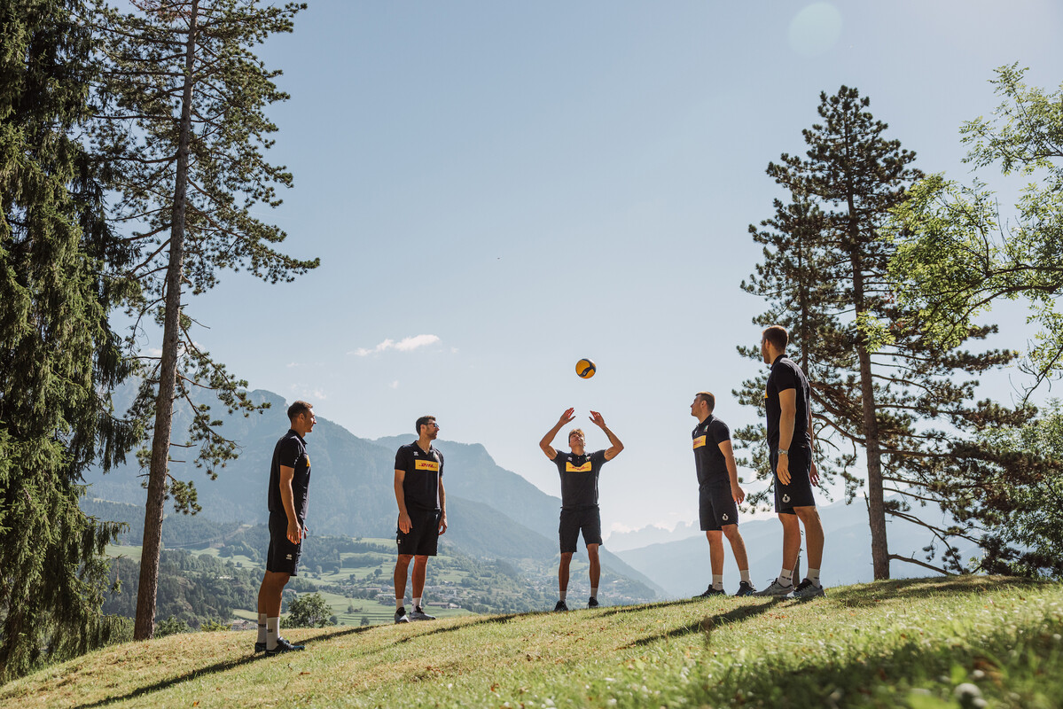 In tanti anni di allenamento in Val di Fiemme i campioni della pallavolo azzurra hanno potuto sperimentare le numerose opportunità offerte dal territorio, arricchendo preparazione e spirito di gruppo con attività collaterali come il trekking, la mountain bike, il rafting o, in questa estate, il curling, sperimentato il 10 agosto scorso con un evento che al PalaCurling di Cembra ha coinvolto anche la nazionale azzurra della disciplina del ghiaccio in una giornata che ha fatto convergere il percorso verso i rispettivi appuntamenti olimpici dei due team, Parigi 2024 per Fefè De Giorgi e i suoi uomini, Milano-Cortina 2026 per il campione olimpico Amos Mosaner e compagni.
